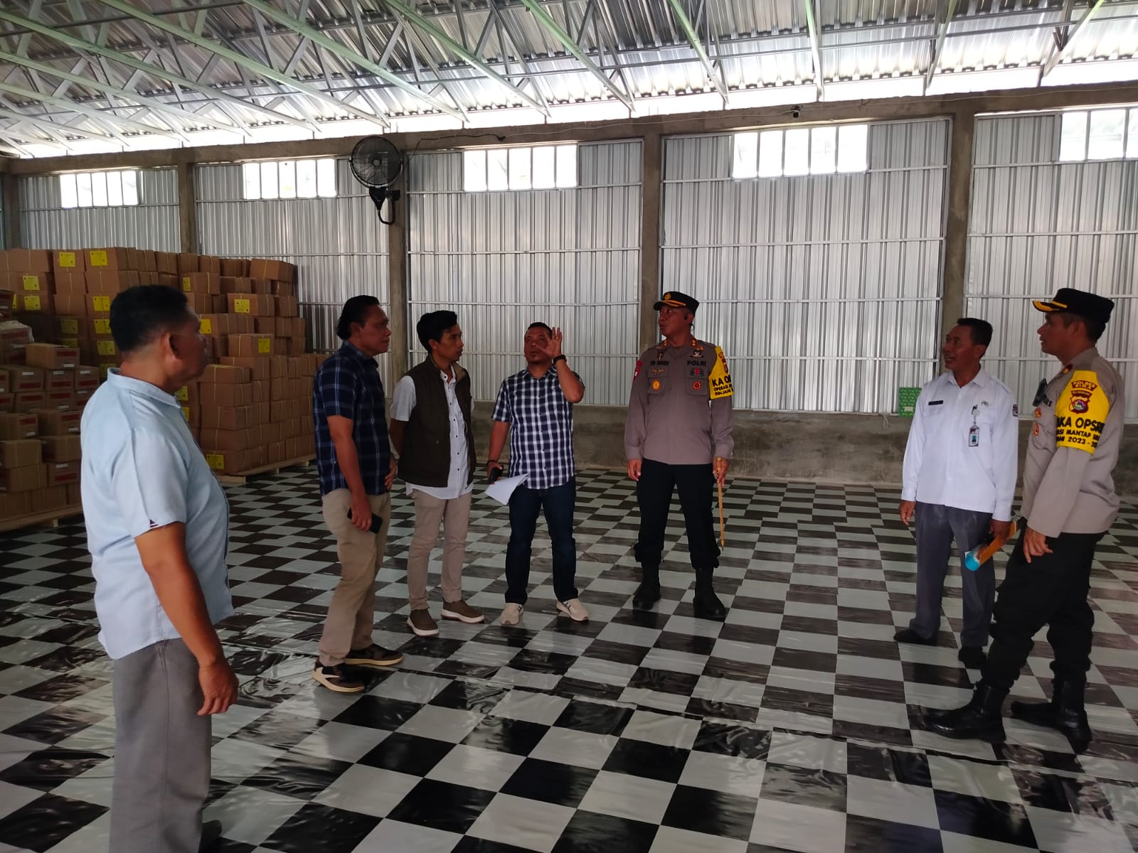 Bima, NTB (5/1) – Kapolres Bima AKBP Eko Sutomo SIK.MIK. melakukan monitoring pelipatan surat suara Pemilu 2024, di gudang Logistik KPU Kabupaten Bima.
