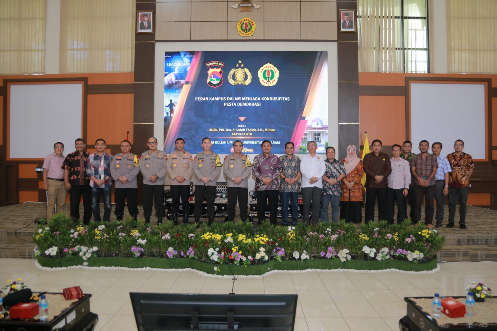 Tampak hadir dalam Kuliah Umum tersebut, Rektor dan para Wakil Rektor Unram, para PJU Polda NTB dan Kapolresta Mataram.