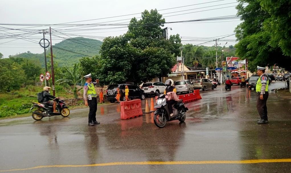 Bima, NTB (16/1) – Satuan Lalu Lintas (Satlantas) Polres Bima Polda NTB menggelar kegiatan strong point dengan melakukan pengamanan dan pengaturan lalu lintas di seluruh titik rawan kecelakaan lalu lintas, rawan kemacetan, pusat keramaian serta lokasi sekolahan.