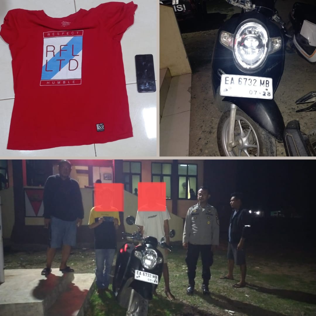 Dua terduga yan diamankan masing-masing berinisial HA (L/23) dan (EA L/19) kedua warga Desa Sakuru ini diamankan karena diduga kuat melakukan pencurian satu unit handphone milik seorang pelajar yang juga warga Desa Setempat.