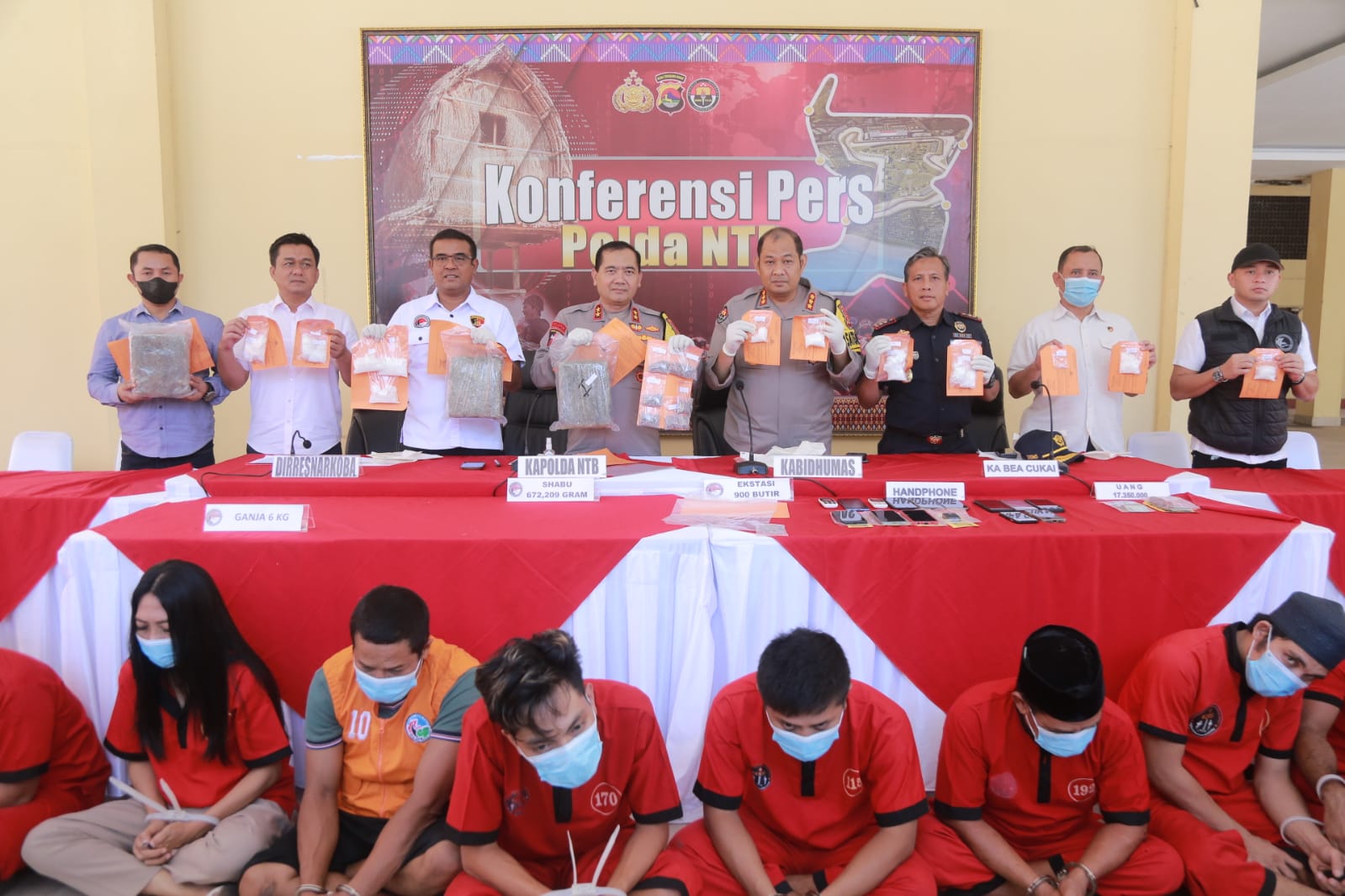 Turut hadir dalam konferensi pers tersebut,selain Direktur Reserse Narkoba Polda NTB Kombes Pol Deddy Supriadi SIK., Kabid Humas Polda NTB Kombes Pol Rio Indra Lesmana SIK., Perwakilan Bea Cukai Mataram, para Kasubdit Direktorat Reserse Narkoba Polda NTB serta para tersangka tindak pidana tersebut.