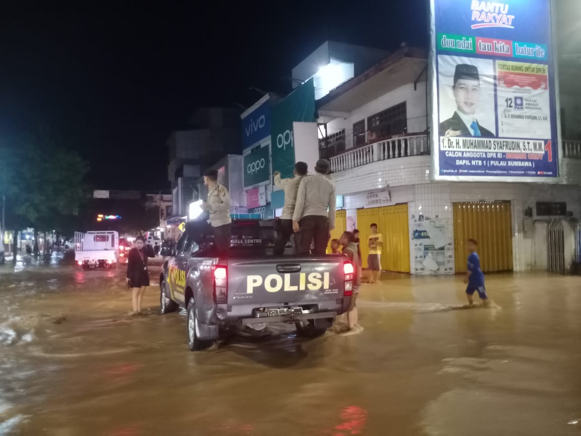 Kapolres Bima Kota AKBP YUDHA PRANATA, S.I.K.,S.H, melalui Kapolsek Rasanae Barat AKP Sirajuddin, S.H, menyampaikan komitmennya dalam memberikan bantuan dan dukungan kepada masyarakat yang terkena musibah banjir.