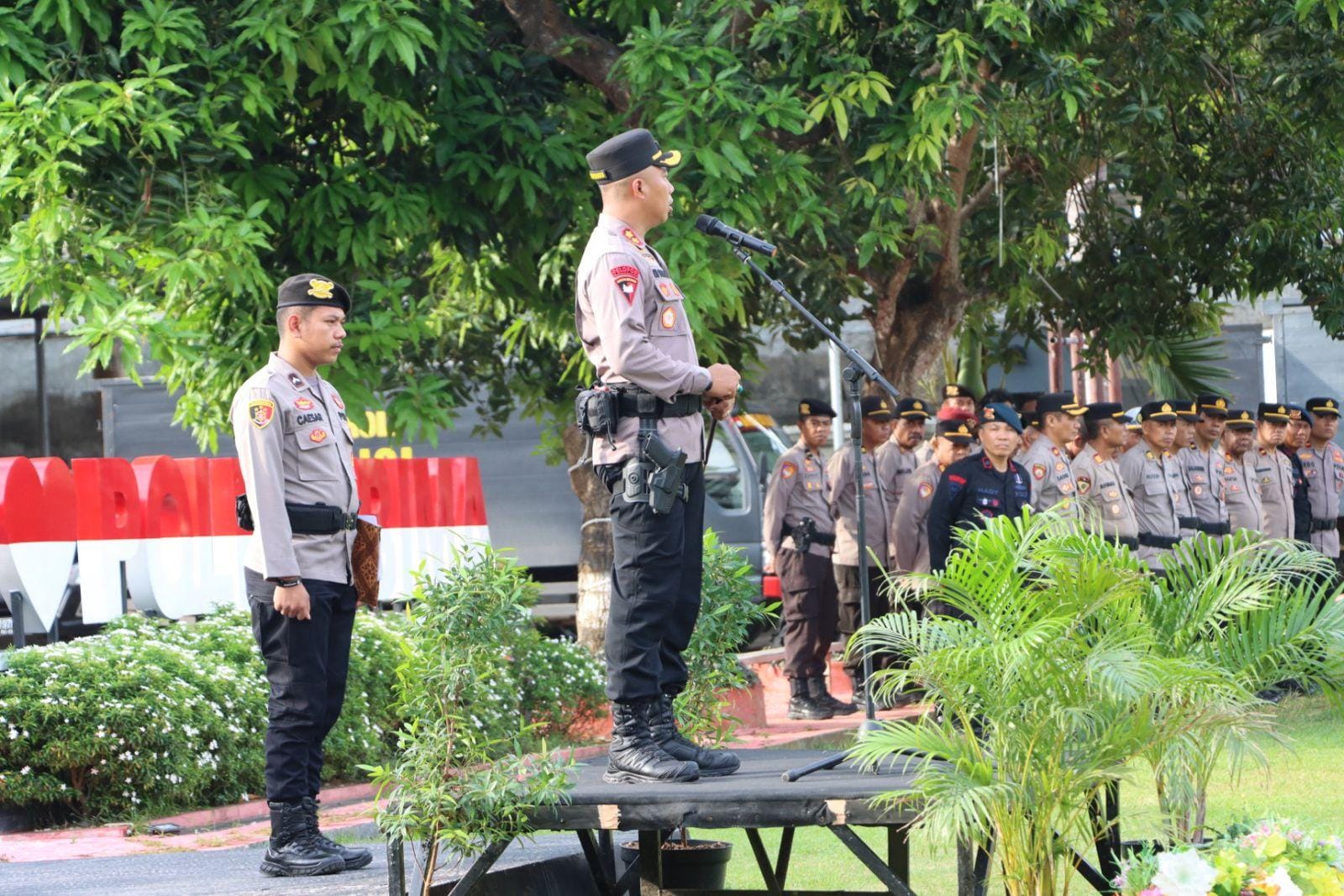 Bima, NTB (24/2) – Kepala Kepolisian Resor Bima Polda NTB AKBP Eko Sutomo SIK.,MIK., memimpin Apel persiapan personel pengamanan Pemilu suara ulang di Lapangan Apel Mapolres Bima Jum,at (23/02/24) sekira pukul 08.00. WITA.
