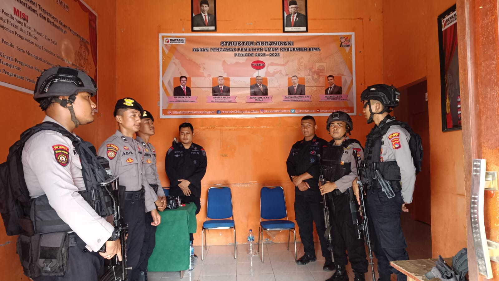 Senin (26/02/24) sekira pukul 13.30. Wita empat personel Satuan samapta yang dikendalikan oleh Kasatnya Iptu Muhtar menyambangi kantor KPU dan Bawaslu Kabupaten Bima.