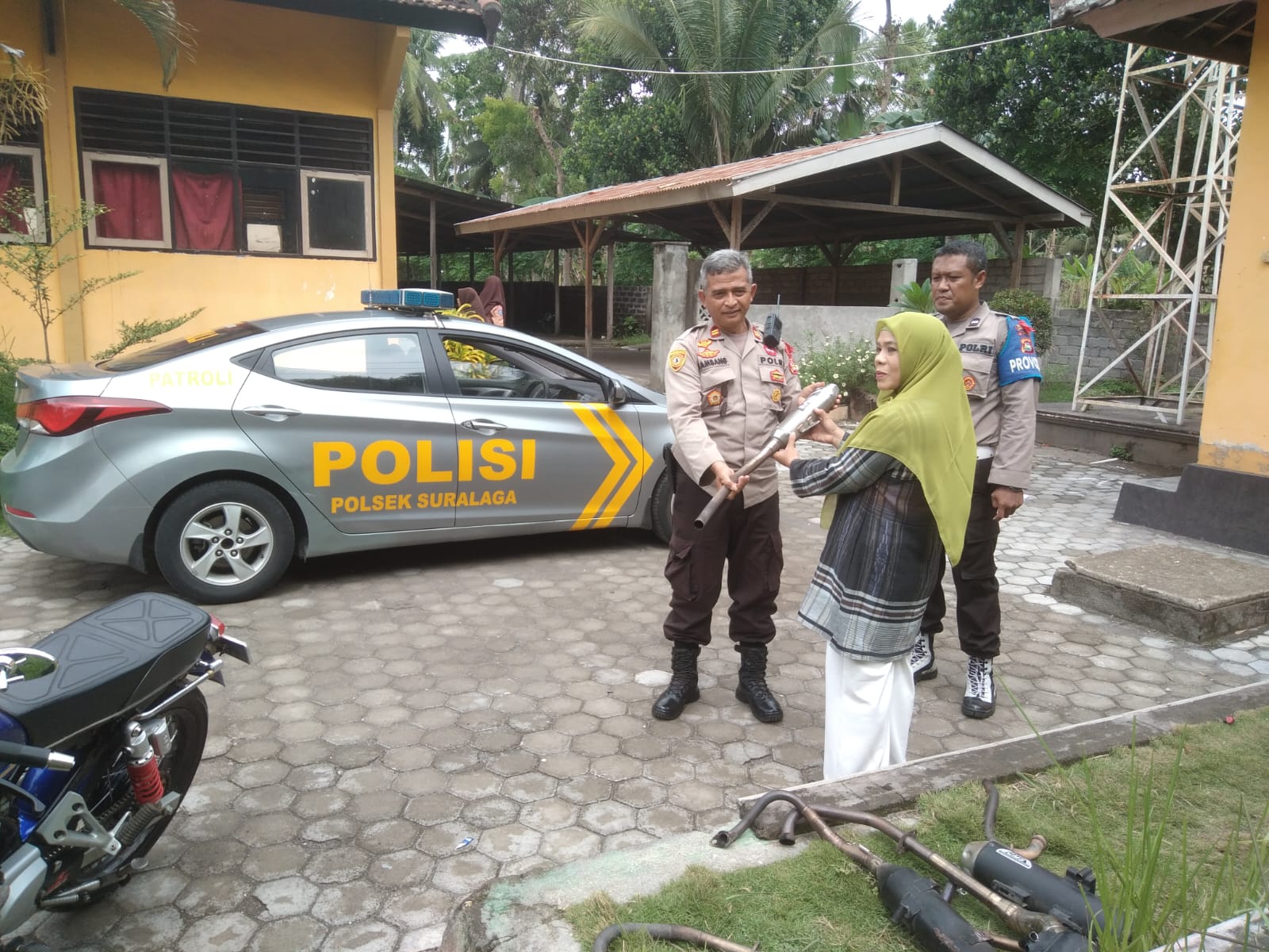 “Hari ini kami melakukan giat mendampingi pihak sekolah SMA 1 Suralaga penertiban kenalpot yang tidak sesuai dengan speknya ataukenalpot brong,” ucap Ipda Bambang Supriyanto disela oprasi.
