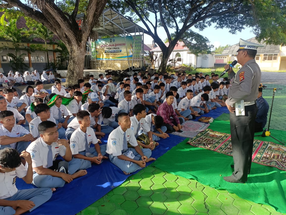 Lombok Tengah NTB – Dalam rangka memberikan edukasi kepada pelajar Sekolah terkait tata tertib lalu lintas, Polres Lombok Tengah melaksanakan Kegiatan Binluh dan Dikmas Lantas Bulan Ramadhan yang diselenggarakan di SMAN 2 Praya Lombok Tengah, Selasa (26/03/2024).