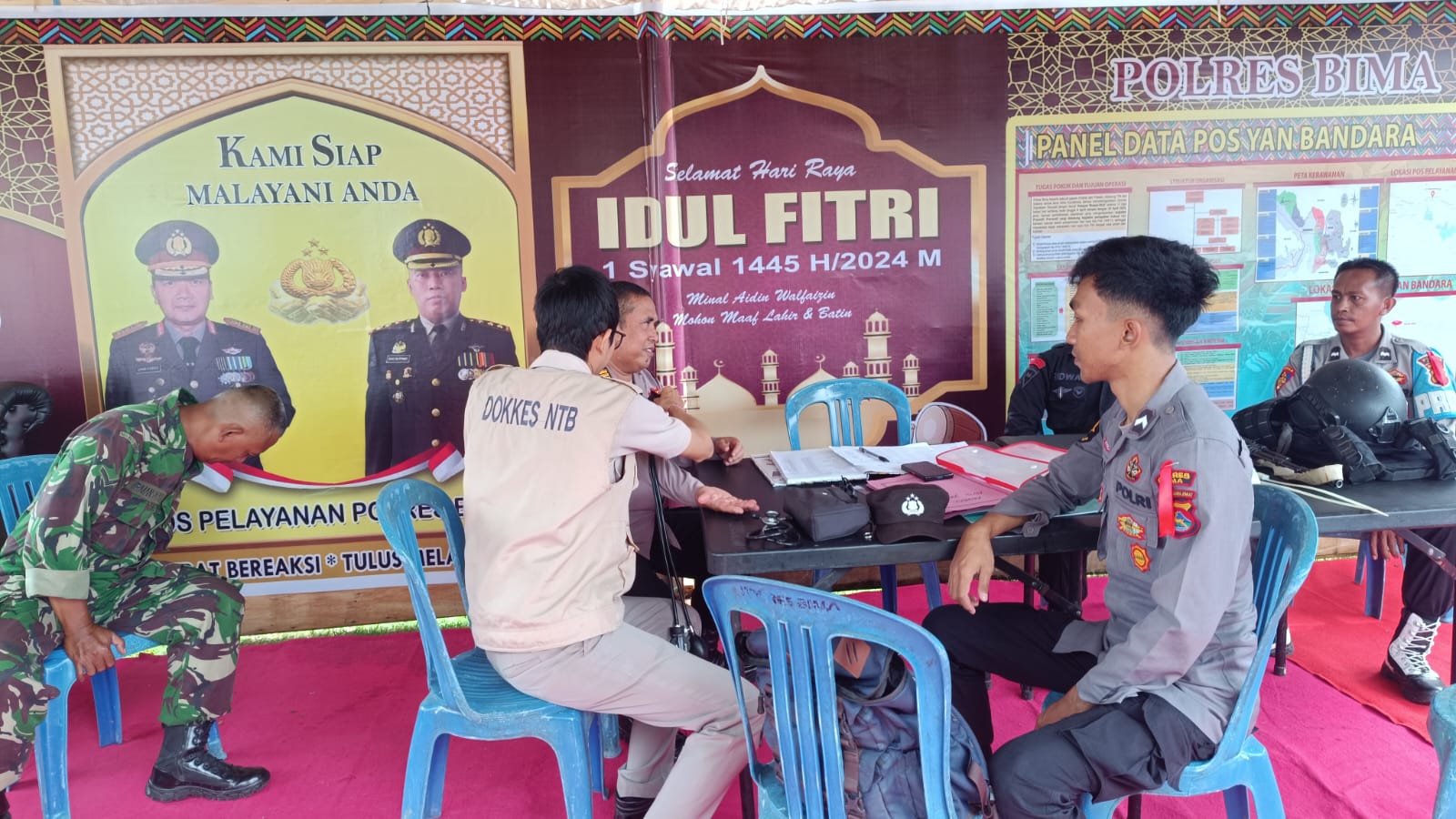 Bima, NTB (08/4) – Untuk memastikan kesehatan personel yang sedang bertugas dalam rangka kegiatan operasi ketupat Rinjani 2024, Personel kasubgas banops Dokkes Polres Bima Polda NTB memeriksa kesehatan petugas di semua Pos Pengamanan (Pos Pam) dan Pos Pelayanan (Pos Yan).