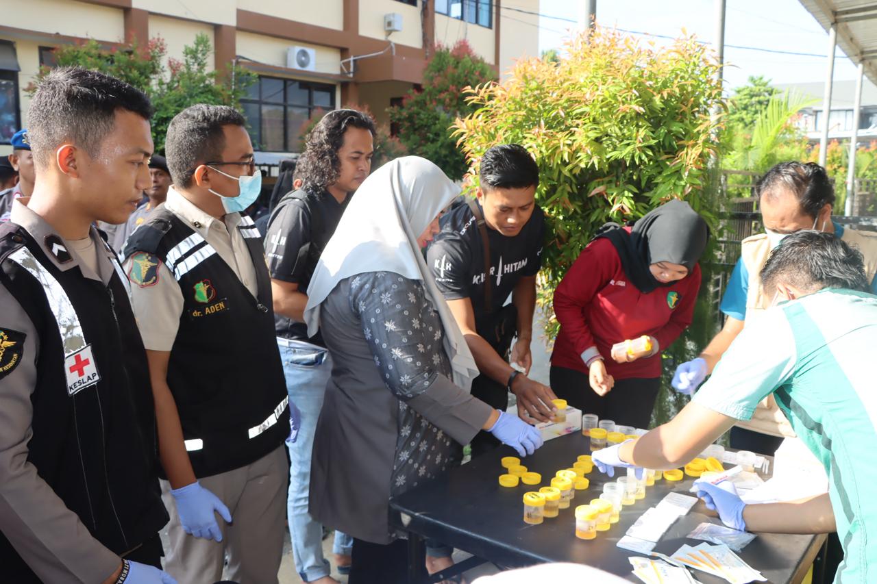 Kota Bima, NTB (25/4) – Polres Bima Kota melakukan tes urine mendadak bagi seluruh personilnya. Tindakan ini dilakukan sebagai bagian dari komitmen Polres Bima Kota untuk memastikan bahwa semua anggota kepolisian bebas dari pengaruh dan bahaya narkoba, Pada Kamis pagi ini, tanggal 25 April 2024.