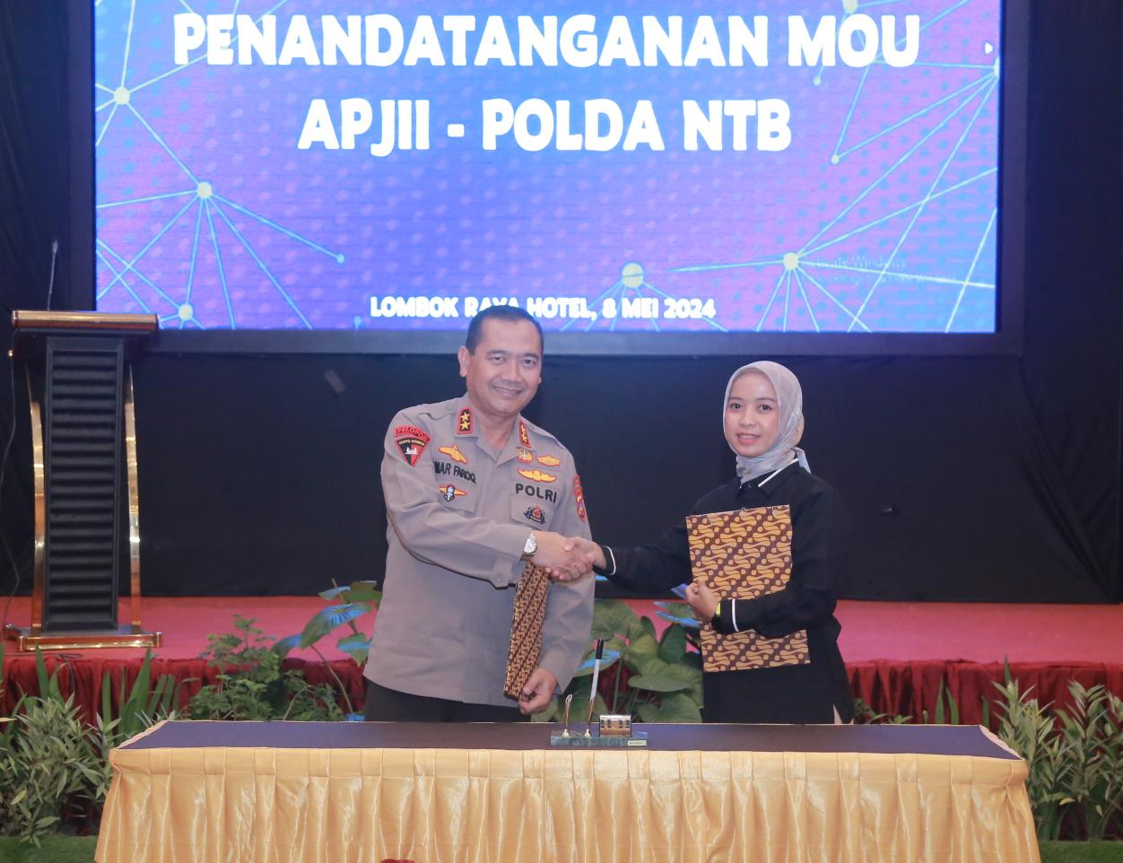 Mataram NTB – Kapolda NTB Irjen Pol. Drs. R. Umar Faroq SH., M.Hum., menghadiri acara penanda tanganan kerja sama antara Asosiasi Penyelenggara Jasa Internet Indonesia (APJII) dengan Polda NTB, Rabu (08/05/2024).