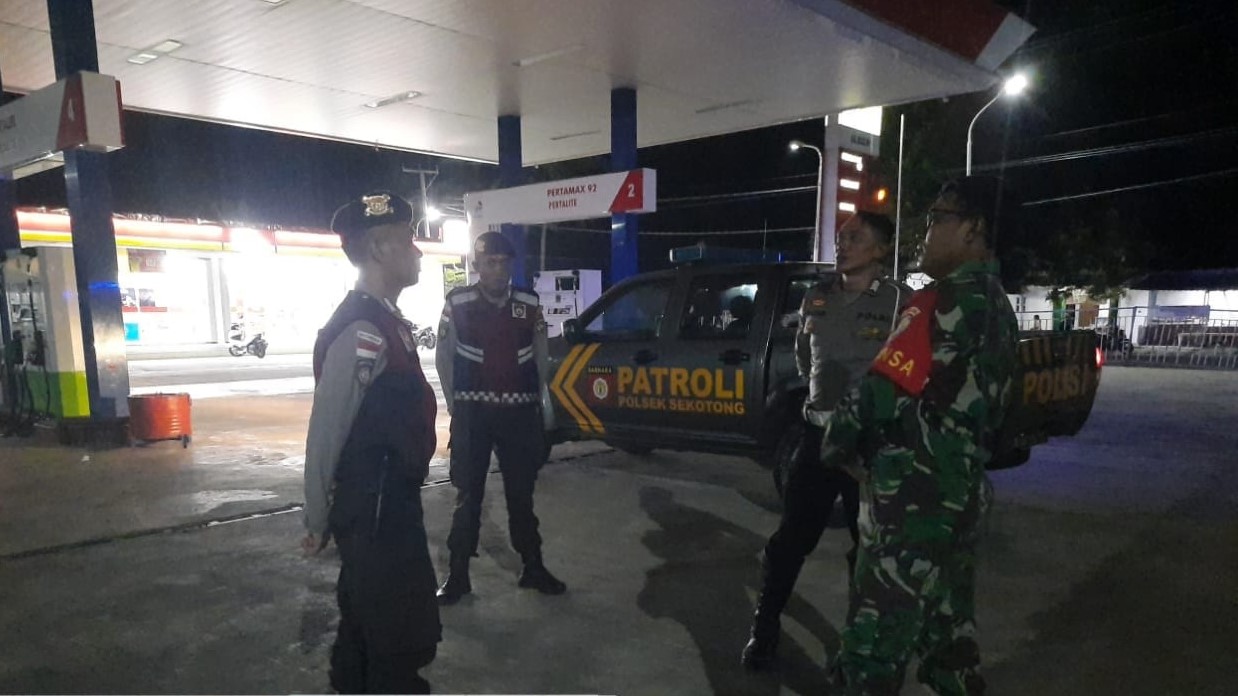 Lombok Barat, NTB – Kapolsek Sekotong, Polres Lombok Barat, Polda NTB, Iptu I Ketut Suriarta, SH., M.I.Kom., memimpin patroli gabungan bersama Babinsa Koramil Sekotong di SPBU Sayong, Dusun Sayong, Desa Cendi Manik, Kecamatan Sekotong, pada Jumat (10/5/2024) malam.