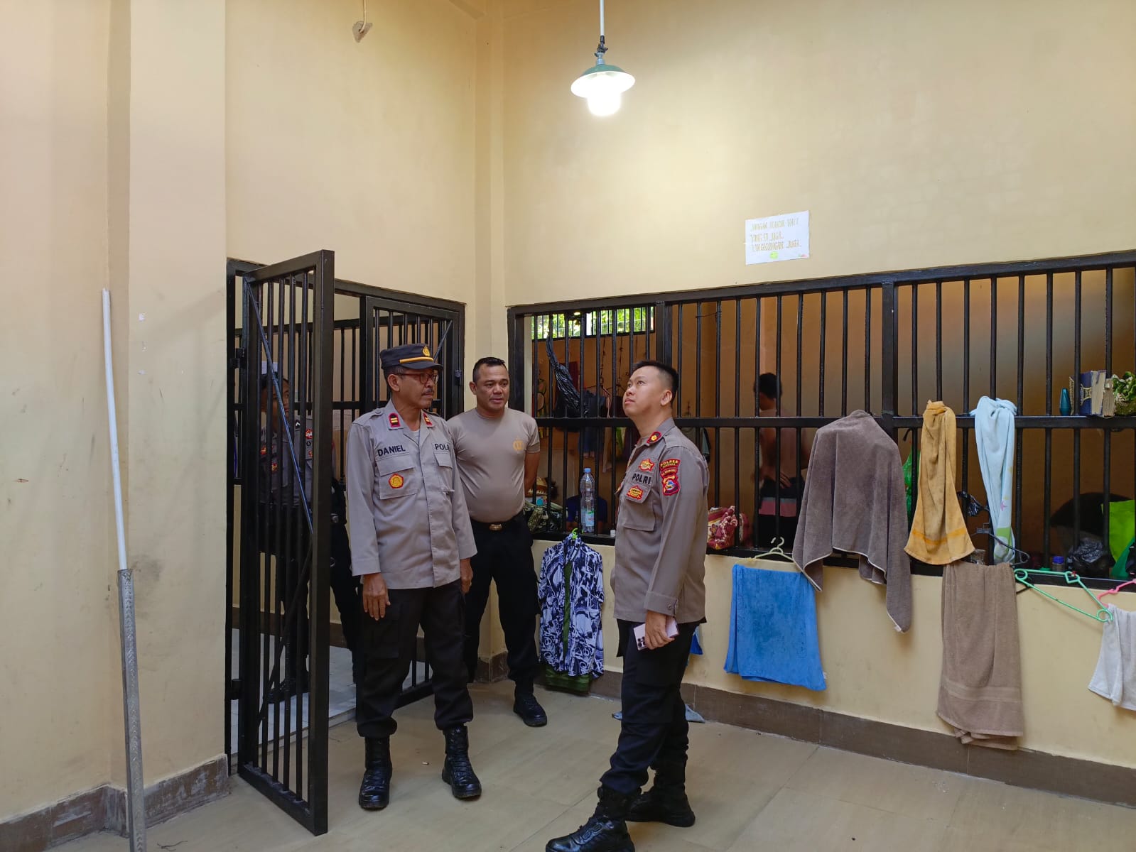 ‘’Dalam kesempatan ini, kami lakukan pengecekan, seluruh tahanan kami tanya kondisinya secara langsung, terkait kesehatan dan keluhan yang meliputi pelayanan diruang tahanan seperti air. Semua dalam keadaan sehat dan baik,’’ kata Wakapolres.