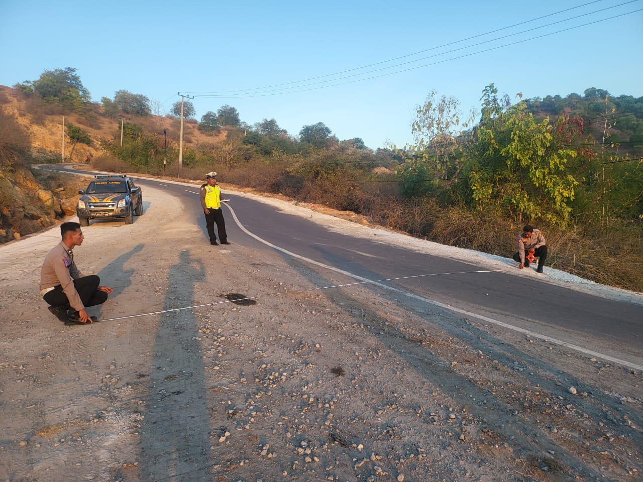 Kota Bima, NTB (23 Mei 2024) – Satuan Lalu Lintas (Sat Lantas) Polres Bima Kota menggelar olah tempat kejadian perkara (TKP) kecelakaan lalu lintas tunggal (OC) yang melibatkan satu unit mobil bus mini (engkel) berwarna merah putih dengan nomor polisi EA 7786 W. Kecelakaan tersebut terjadi pada Rabu siang, pukul 13.30 WITA, di Jalan Lintas Dusun Wadu Nggaha, Desa Sumi, Kecamatan Lambu, Kabupaten Bima.