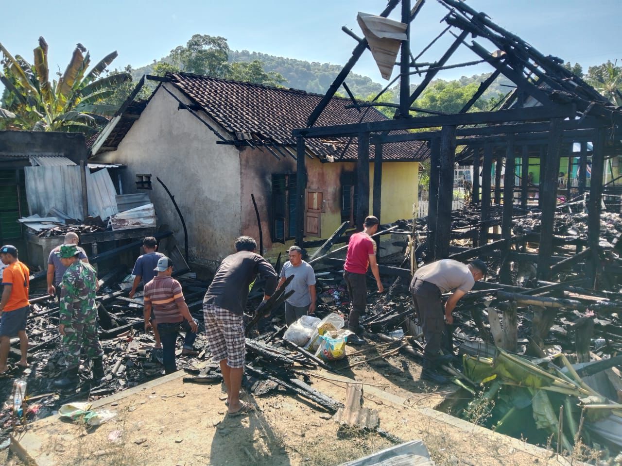 Sumbawa Barat – Paska terjadinya musibah kebakaran rumah yang menimpa 4 ( empat ) rumah warga di Dsn. Banjar Ds. Banjar Kec. Taliwang Kab. Sumbawa Barat Polres Sumbawa Barat turunkan personil untuk bergotong royong untuk membersihkan sisa kebakaran rumah yang terjadi di Dusun Banjar Desa Banjar Kecamatan Taliwang Sabtu (25/05) lalu.