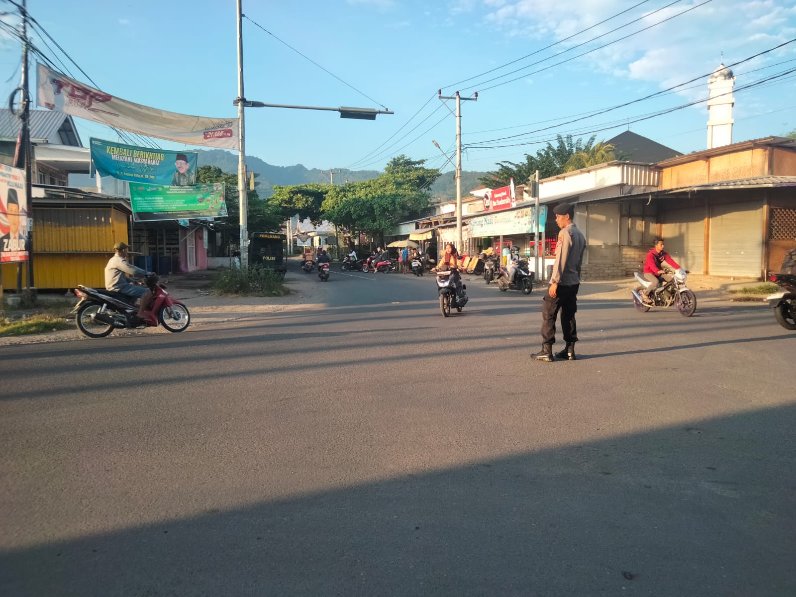 Polsek Pemenang Rutin Lakukan Rawan Pagi Antisipsi Kemacetan