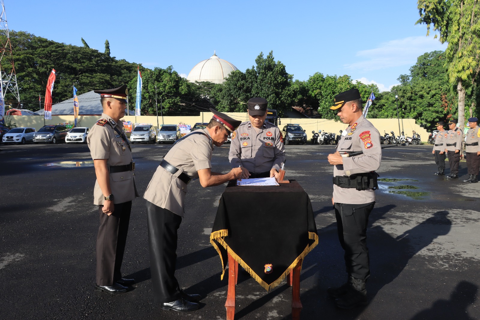 Lombok Tengah (NTB) – Kapolres Lombok Tengah AKBP Iwan Hidayat, SIK memimpin upacara serah terima jabatan Kapolsek Pujut dari IPTU Samsul Bahri kepada IPTU R. Kalimantan Jaya bertempat di Lapangan Apel Mapolres Lombok Tengah, Kamis (4/7).