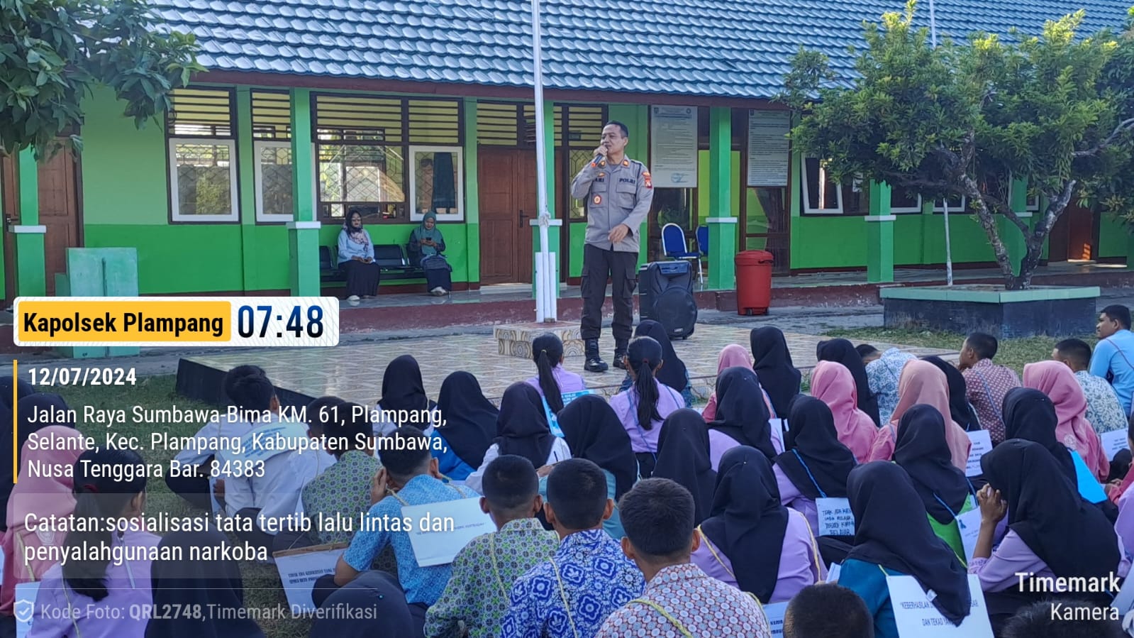 Dalam kegiatan tersebut, Kapolsek Plampang berkesempatan menyampaikan beberapa himbauan dan penyuluhan terkait tertib berlalu lintas, bahaya narkoba serta kenakalan remaja.