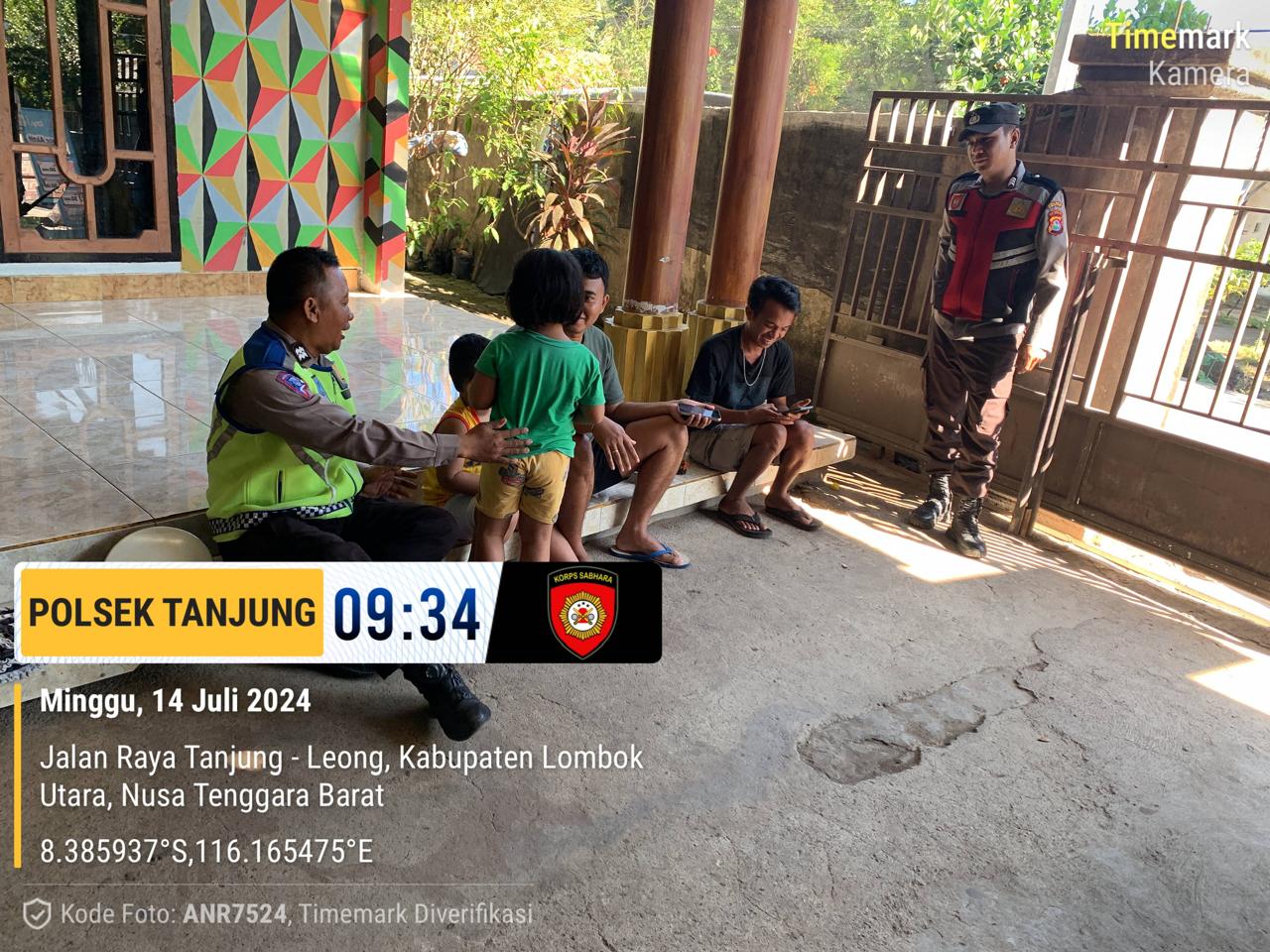 Polda NTB, Polres Lombok Utara-Guna meningkatkan keamanan dan ketertiban di wilayah baik siang hari maupun malam hari, Polsek Tanjung gencar melakukan patroli dengan metode dialogis bersama warga masyarakat untuk sampaikan pesan Kamtibmas Di Desa Tegal Maja. Kecamatan Tanjung Kebupaten Lombok Utara Minggu 14/07/2024