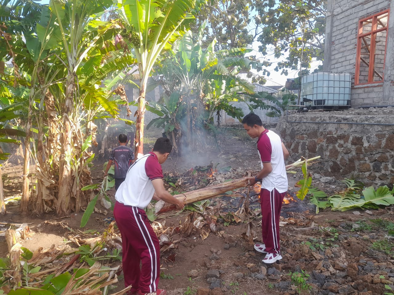 Terlihat para Anggota Polsek Pekat bersama-sama melakukan aktivitas seperti membabat rumput-rumput yang tumbuh secara liar dan menyapu membersihkan sampah-sampah yang ada disekitar lingkunga,n Mapolsek dan membakarnya
