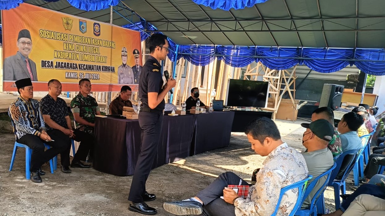 Lombok Barat, NTB – Polsek Kuripan, Polres Lombok Barat, Polda NTB, hadir dalam acara Sosialisasi Pemberantasan Barang Kena Cukai Ilegal, dalam hal ini Rokok Ilegal. Bertempat di Kantor Desa Jagaraga, Kecamatan Kuripan, Kabupaten Lombok Barat.