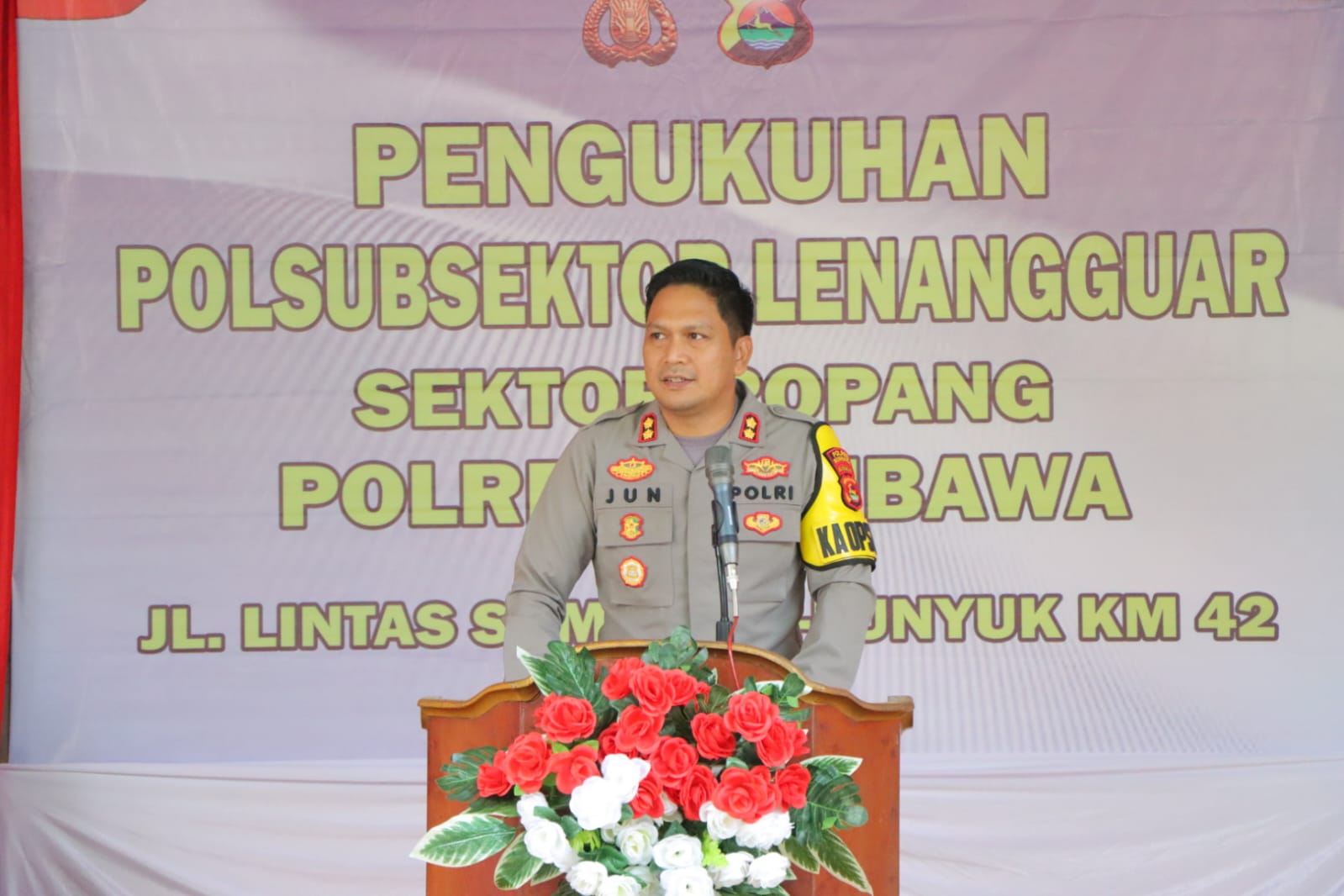 Dalam sambutannya, Kapolres Sumbawa mengucapkan terima kasih kepada seluruh masyarakat Kecamatan Lenangguar yang telah menyempatkan diri untuk menghadiri pengukuhan Polsubsektor Lenangguar.