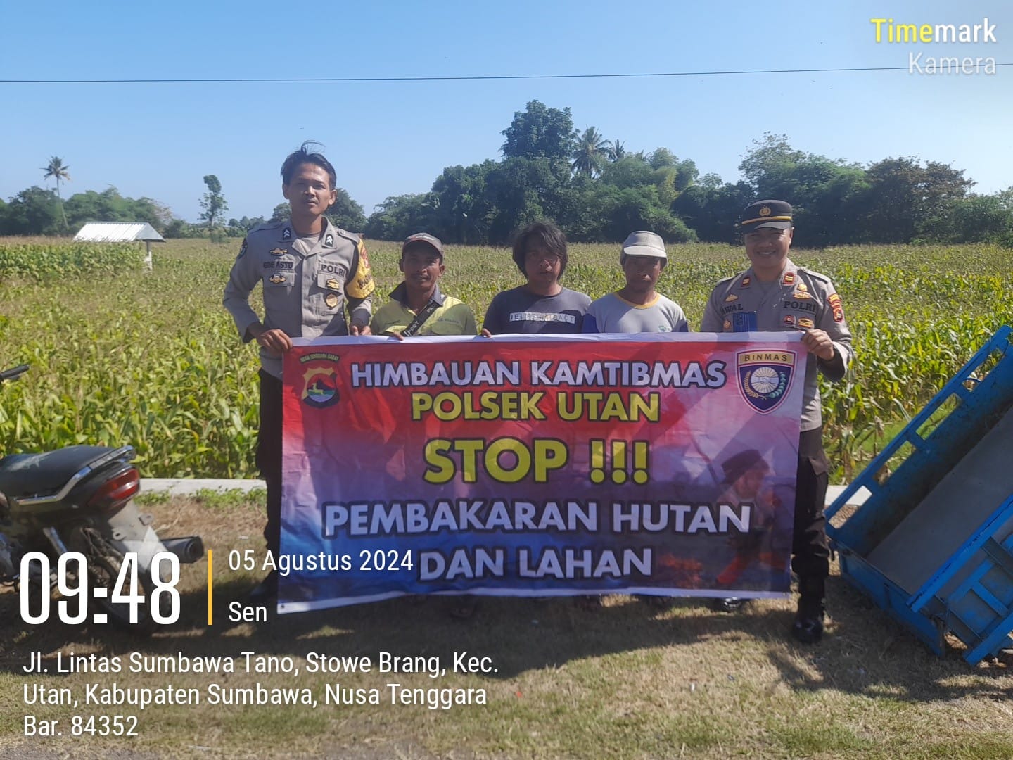 Sumbawa Besar-NTB, Upaya pencegahan Kebakaran Hutan dan Lahan (Karhutla) terus digalakkan Polres Sumbawa, jajaran Polda NTB, termasuk yang dilaksanakan personel Polsek Utan pada hari Senin (05/08/24) pagi.