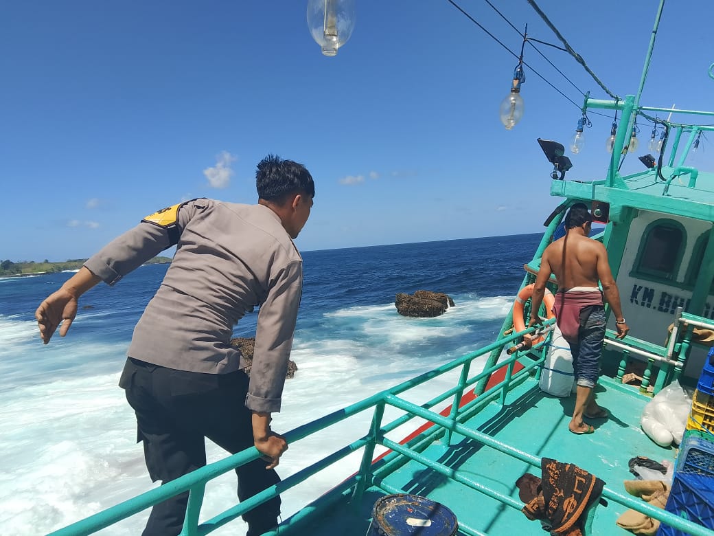 Sumbawa Barat – Personel Polsek Sekongkang Polres Sumbawa Barat bersama masyarakat Desa Talonang berhasil melakukan evakuasi ABK kapal motor yang terdampar di wilayah perairan Sampar Ujung Desa Talonang Kecamatan Sekongkang Kabupaten Sumbawa Barat, Minggu (11/8).