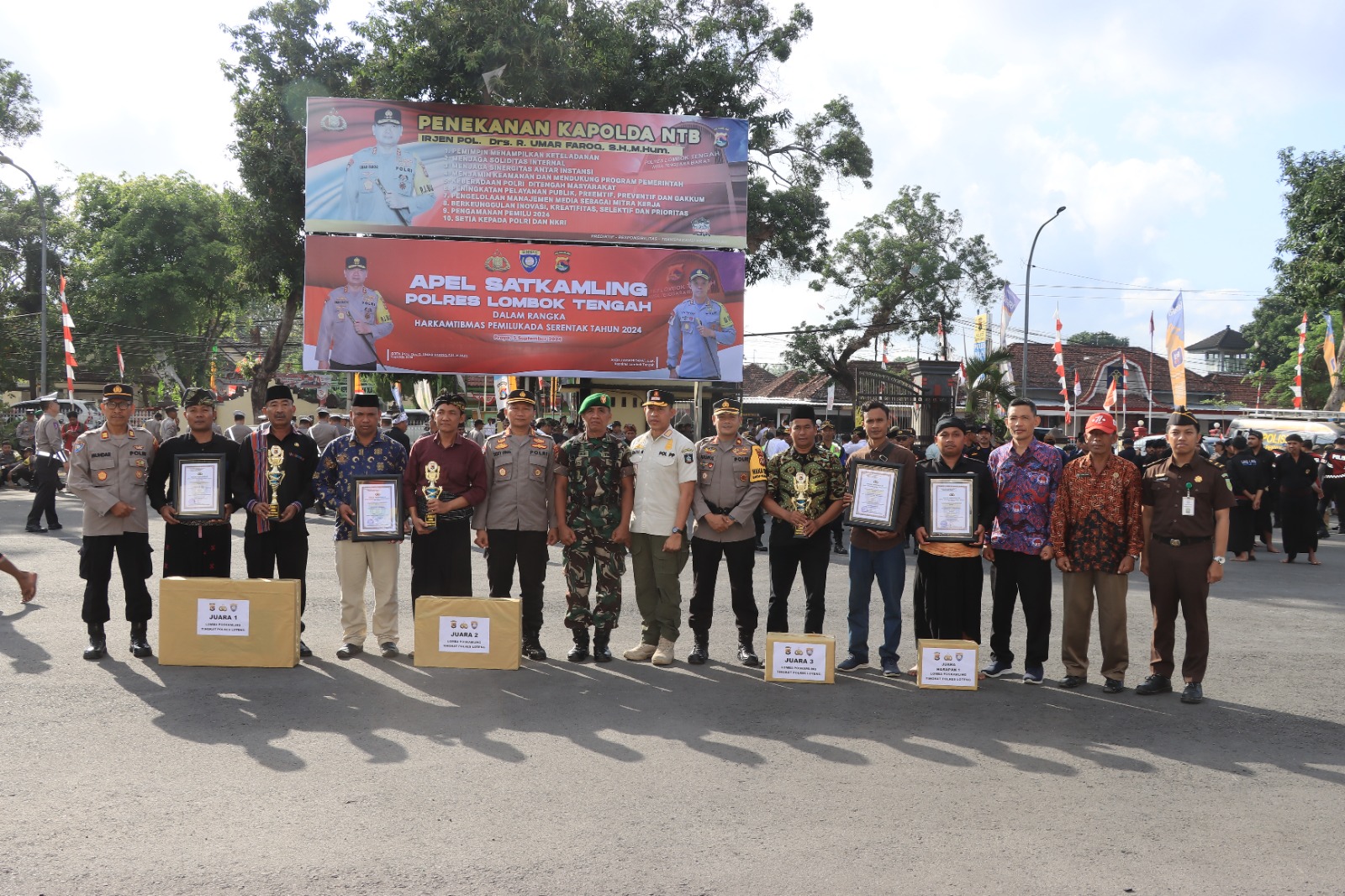 Lombok Tengah, (NTB) – Kepolisian Resor (Polres) Lombok Tengah menggelar Apel Satuan Keamanan Lingkungan (Satkamling) dalam rangka mewujudkan Pilkada Damai 2024 sekaligus dirangkaikan penyerahan penghargaan kepada pemenang lomba Satkamling tingkat Polres Lombok Tengah.