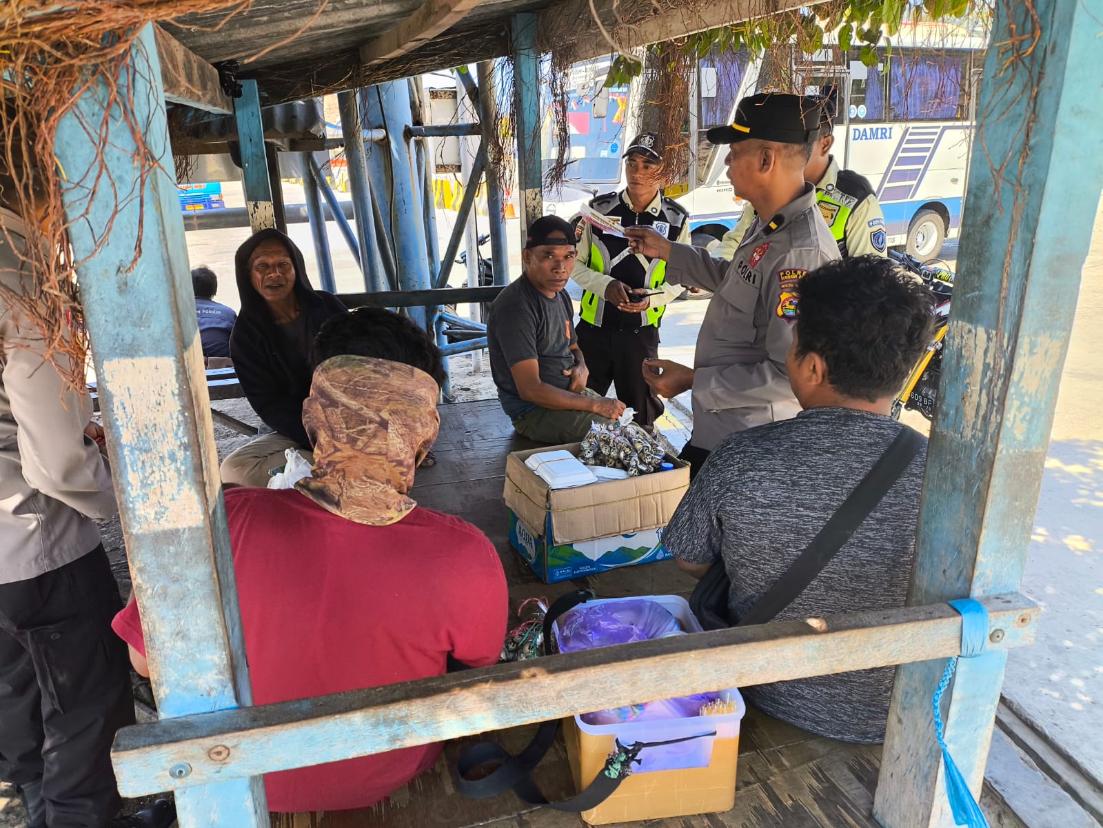 Sumbawa Barat – Tim Operasi Mantap Praja 2024 Polres Sumbawa Barat terus melakukan cooling system melakukan patroli oleh Satgas Preventif kali ini melakukan dialog santai bersama komunitas pedagang di area Pelabuhan Penyeberangan Poto Tano, Rabu (18/9).