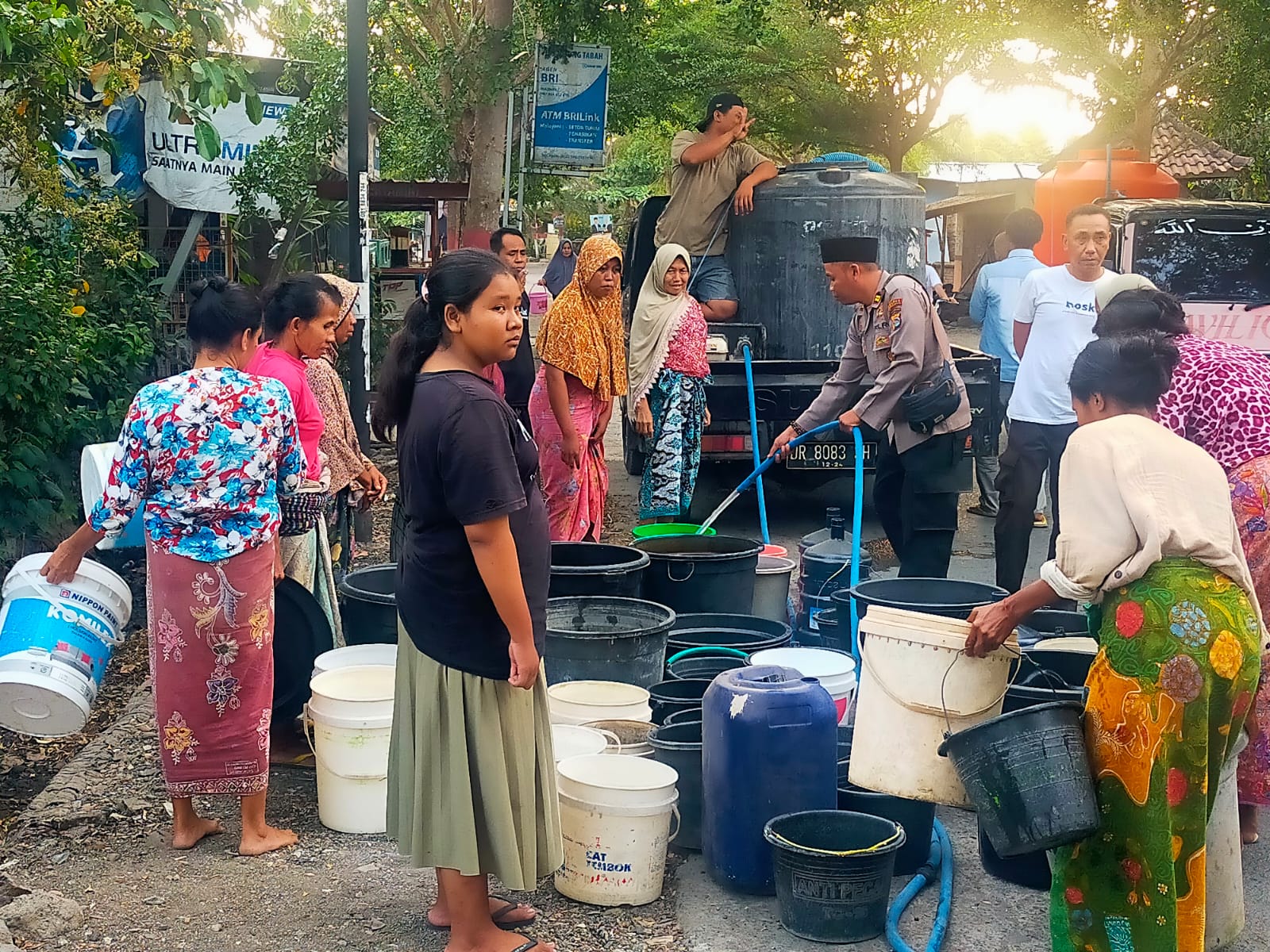 Lombok Tengah, (NTB) – Kepolisian Sektor Praya Barat Polres Lombok Tengah salurkan Air bersih kepada masyarakat yang terdampak kekeringan di Desa Ungga Kecamatan Praya Barat Daya, Jumat (20/9).