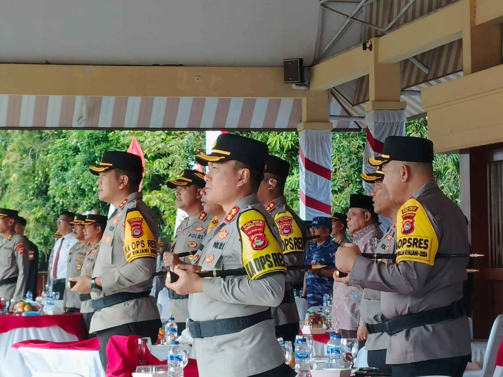 Hadir pada upacara tersebut Danrem 162/WB, Wakapolda NTB, Ketua DPRD NTB, Sekda NTB mewakili Pj. Gubernur NTB, Danlanal Mataram, Danlanud ZAM, Kajati NTB, Kabinda NTB, Ketua PN NTB, segenap PJU Polda NTB, para Kapolres/ta Jajaran Polda NTB, serta segenap anggota Forkopimda NTB.