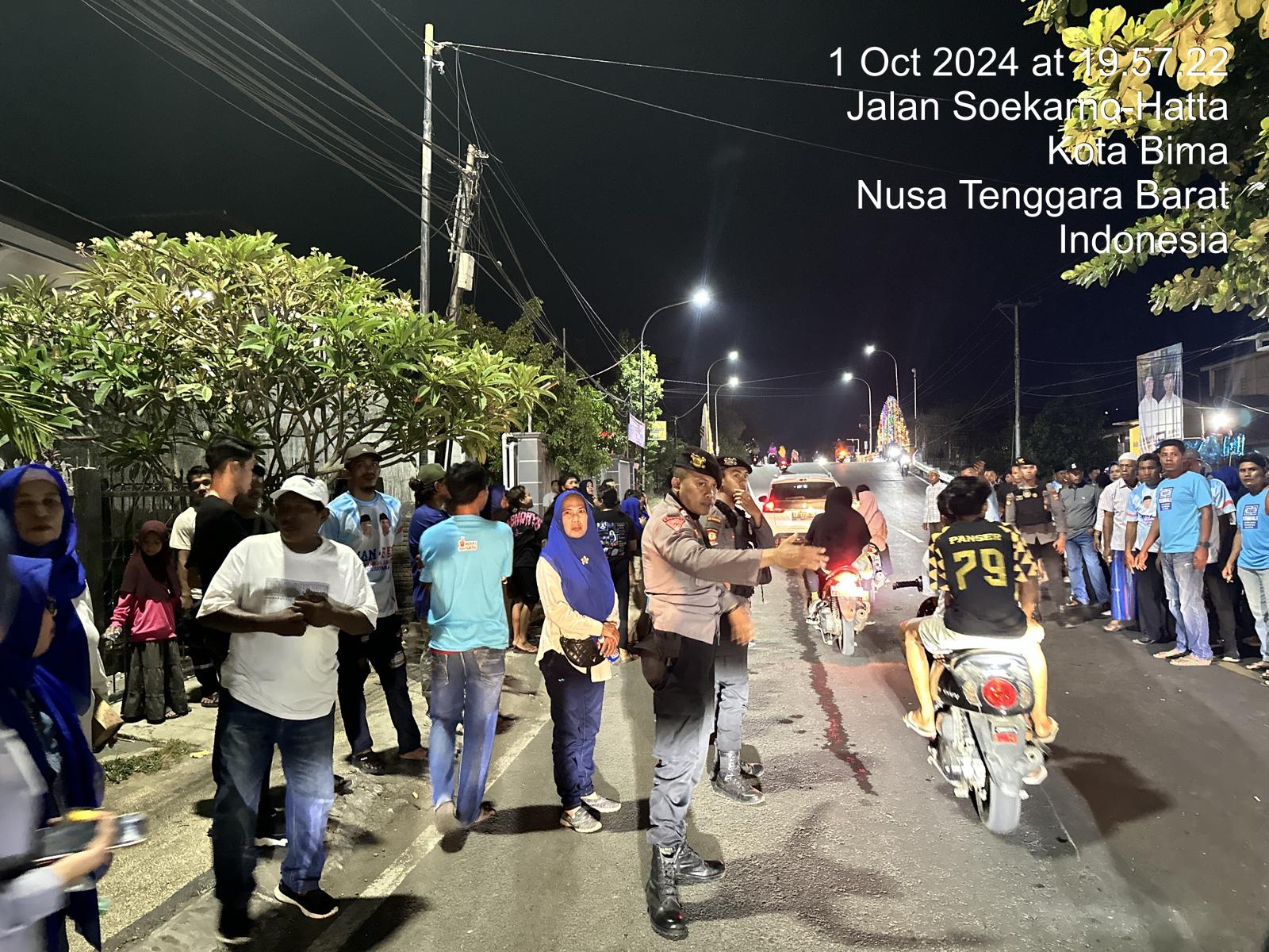 Kota Bima, NTB (02/10) – Personel Polres Bima Kota yang terlibat dalam Operasi Mantap Praja (OMP) Rinjani 2024 dikerahkan untuk melaksanakan pengamanan kegiatan kampanye salah satu pasangan calon (paslon) Wali Kota dan Wakil Wali Kota Bima. Kegiatan ini berlangsung pada hari Selasa, 1 Oktober 2024, sekitar pukul 20.00 WITA di wilayah Kecamatan Raba, Kota Bima.