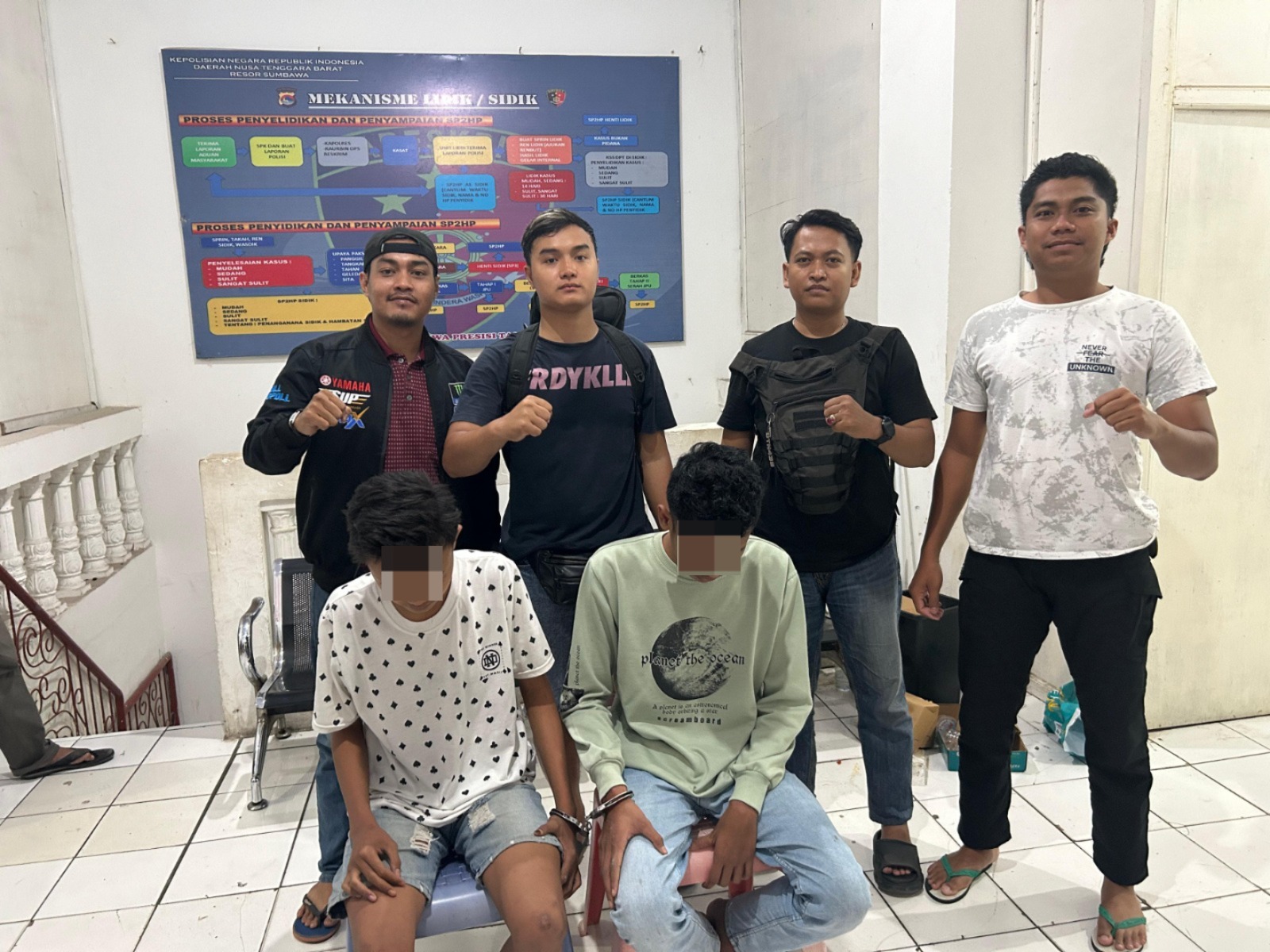 Sumbawa Besar NTB, Kasus pembacokan dua orang mahasiswa di Sumbawa berhasil diungkap satuan reserse kriminal (Reskrim) Poris Sumbawa. pengungkapan ini berhasil setelah diamankannya 5 orang yang diduga terlibat. dimana dua orang diringkus pada senin 7 Oktober malam dan 3 orang lainnya diamankan pada Selasa 8 Oktober pagi dan malam harinya.
