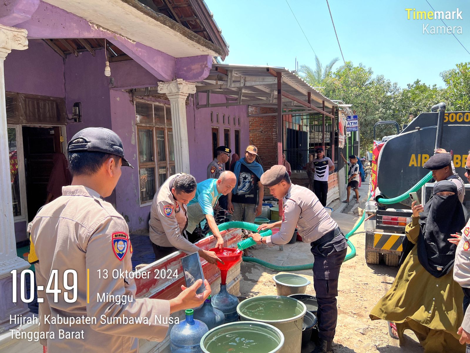 Menyikapi hal tersebut, Polres Sumbawa Polda NTB bersama Polsek Lape menyalurkan bantuan air bersih bagi warga masyarakat yang terdampak kekeringan di Desa Hijrah Kecamatan Lape, Minggu (13/10/24) pagi.