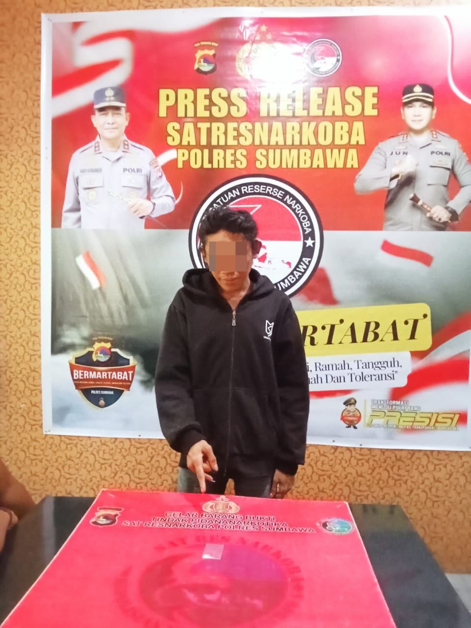 Sumbawa Besar – NTB,  Satresnarkoba Polres Sumbawa, Polda NTB, berhasil menangkap terduga pelaku tindak pidana penyalahgunaan narkotika jenis sabu pada Rabu 23 Oktober 2024 sekitar pukul 13.00 Wita.