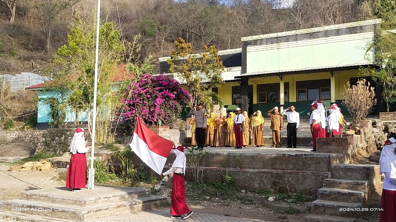 Sumbawa Barat – Momentum Peringatan Hari Sumpah Pemuda dimanfaatkan oleh Bhabinkamtibmas Ds. Mantun Polsek Maluk Bripka Ramli menjadi Pembina Upacara di SD Negeri 3 Maluk yang lokasinya di Desa Mantun, Senin 28 Oktober 2024.