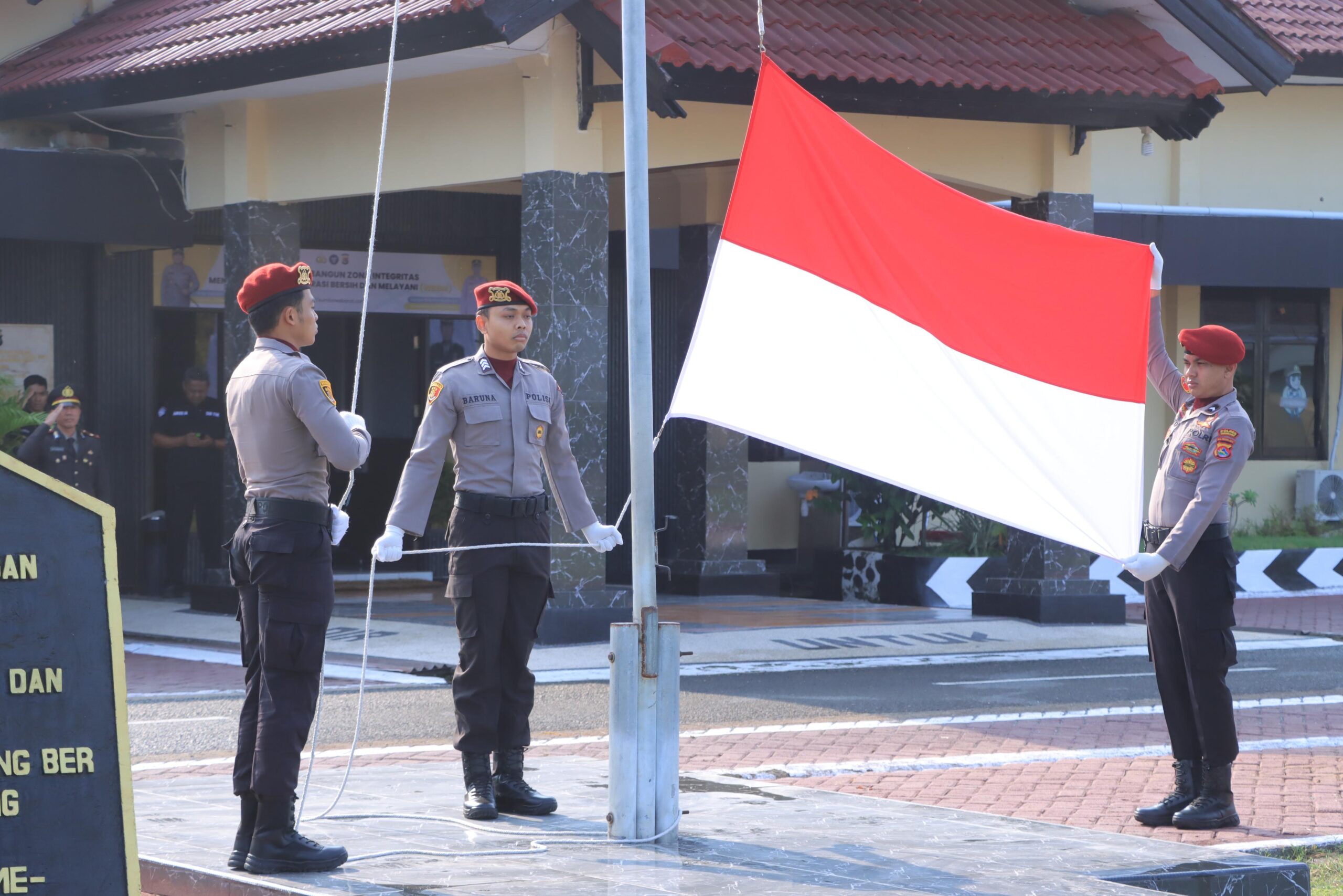Sumbawa Barat – Memperingati Hari Pahlawan Polres Sumbawa Barat melaksanakan upacara pengibaran bendera di Lapangan Sarja Arya Racana Polres Sumbawa Barat, Minggu (10/1/2024).