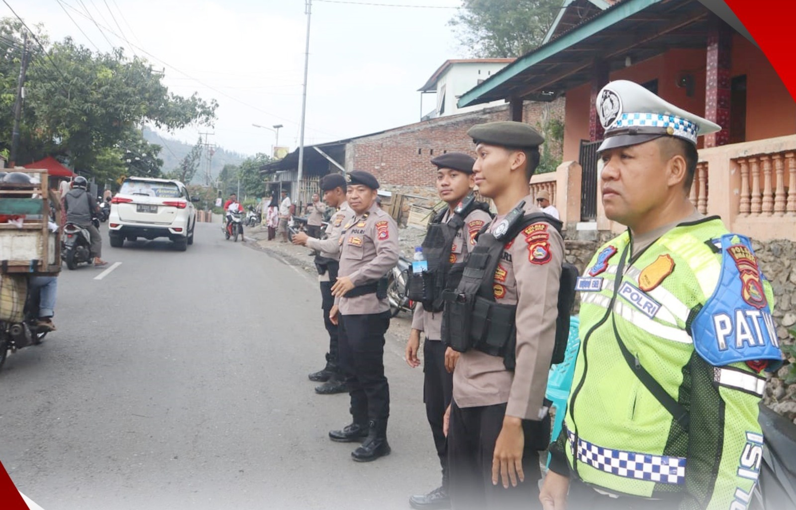 Kota Bima, NTB (12/11) – Personel Polres Bima Kota yang tergabung dalam Operasi Mantap Praja (OMP) Rinjani 2024 melaksanakan pengamanan dalam kegiatan kampanye tatap muka atau blusukan pasangan calon (paslon) Walikota Bima di Kelurahan Oimbo, Kota Bima. Kegiatan ini bertujuan untuk menciptakan situasi aman dan kondusif bagi seluruh peserta dan masyarakat yang hadir dalam kampanye.