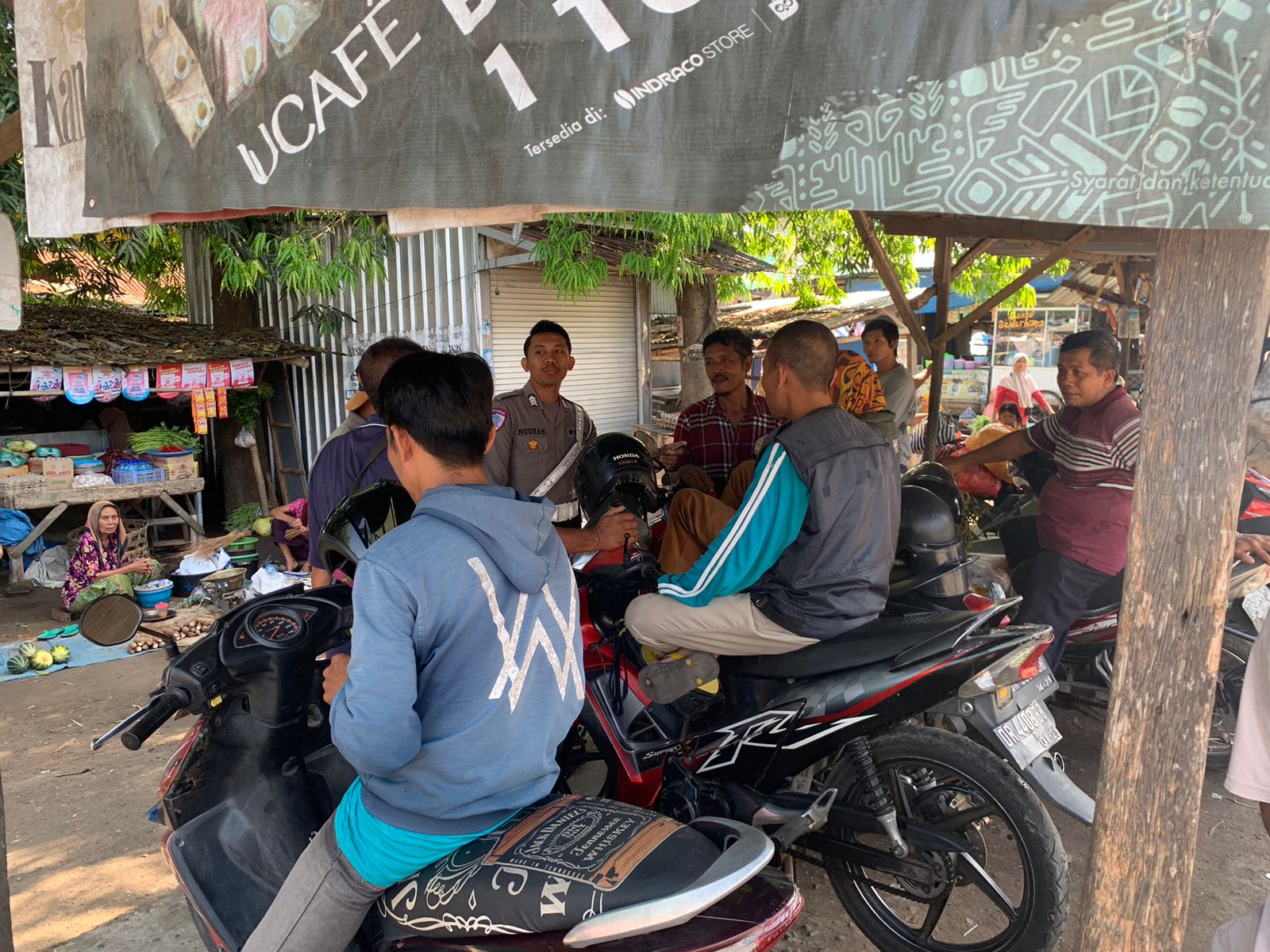 Personel Unit Kamsel Satlantas yang bertugas dalam patroli ini memberikan edukasi langsung kepada para pengemudi ojek di pangkalan Pasar Gerung.