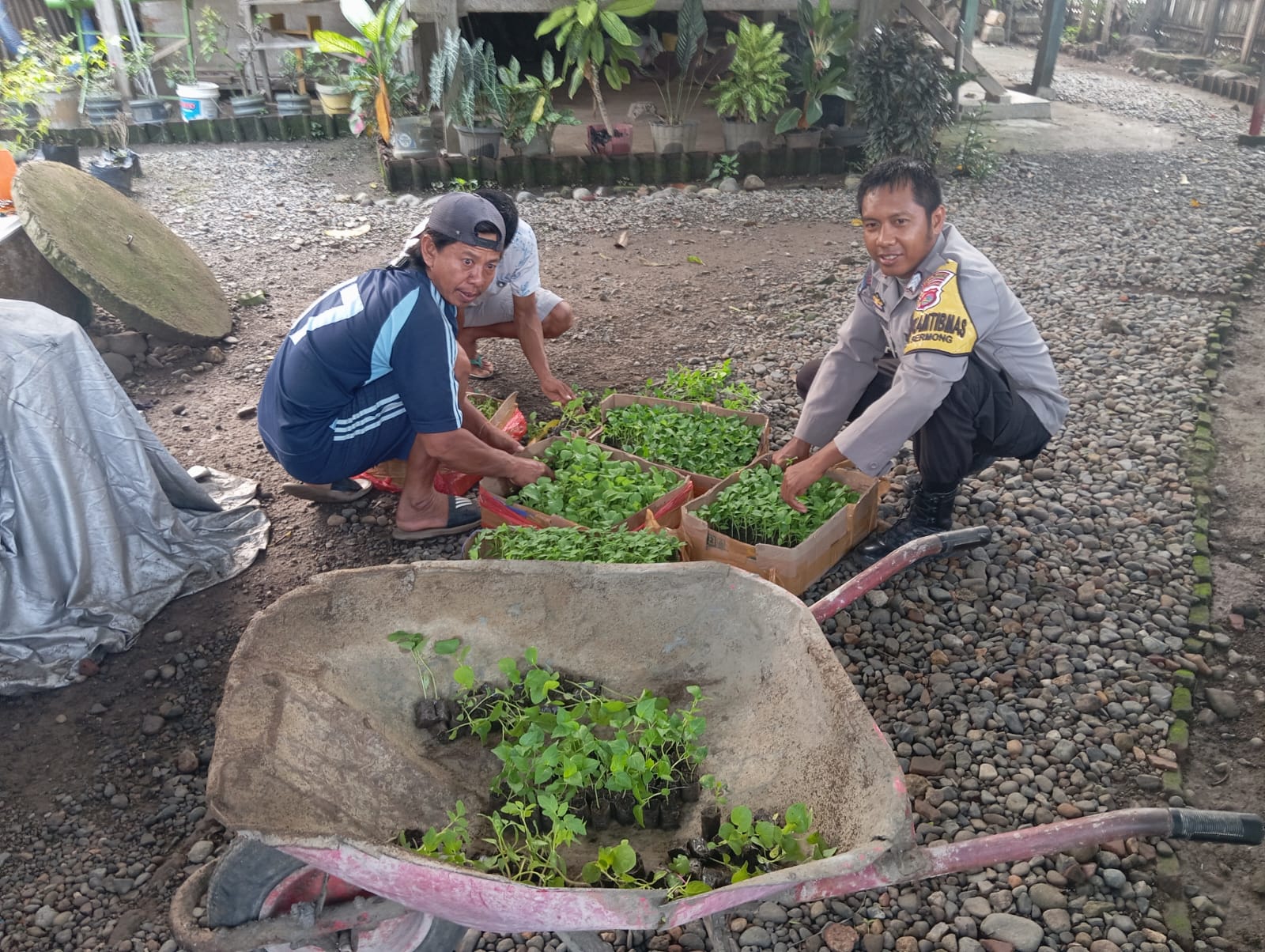Bhabinkamtibmas Desa Sermong Gunakan Tunjangannya untuk Beli Bibit Tanaman Warga Binaannya