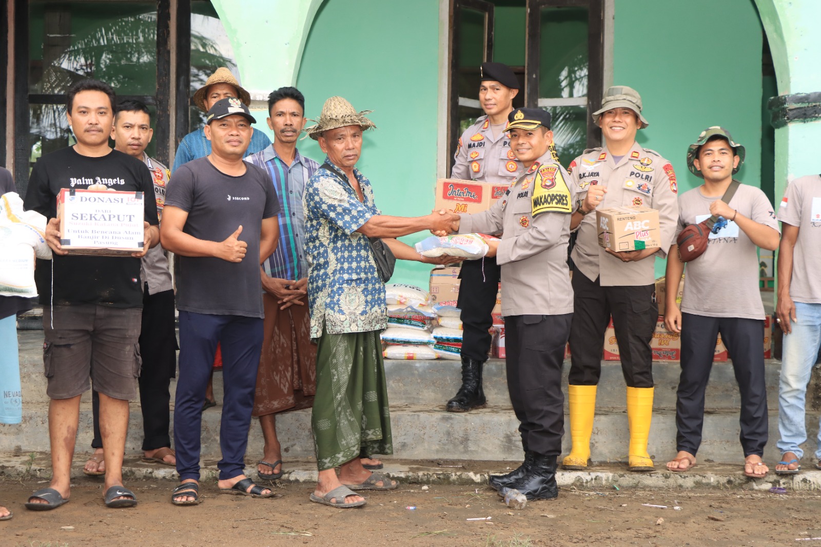 Bantuan berupa beras, mie instan, minyak, telur dan gula diberikan kepada warga yang terdampak banjir ini merupakan bentuk kepedulian polri terhadap masyarakat yang mengalami musibah bencana alam.