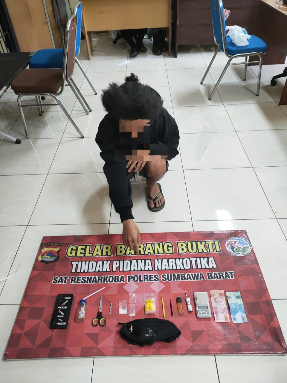 Sumbawa Barat – Tim Opsnal Sat Resnarkoba Polres Sumbawa Barat kembali mengamankan seorang laki-laki (RK) 20 tahun, di rumahnya Desa Temekan Kecamatan Taliwang Kabupaten Sumbawa Barat, Sabtu (11/01/2025) pukul 17.15 WITA.