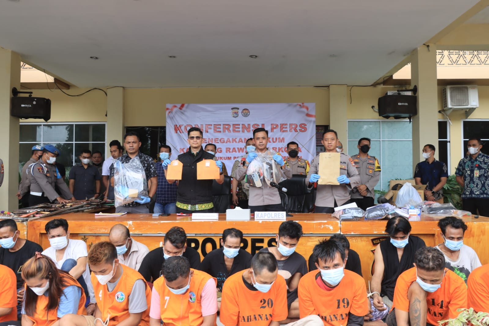 Menurut Roman 25 orang yang diamankan terdiri dari tiga orang merupakan TO (target operasi) inisial R alias S, S dan M alias dan 12 orang merupakan non TO (target operasi) inisial BU, M, IJ, J, AEP, AM, RAP, YY, SAAI, AR, RH, NA.