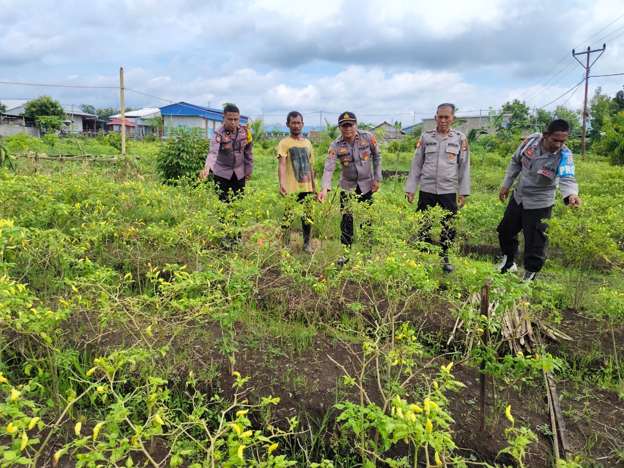 Kapolsek Dompu bersama jajarannya melakukan pemantauan terhadap ketahanan pangan di lahan pertanian milik Bapak Anam (50), warga Dusun O’o Timur, Desa O’o, Kecamatan Dompu, Kabupaten Dompu. Kegiatan ini merupakan bagian dari upaya mendukung Program Ketahanan Pangan Nasional menuju Indonesia Emas 2045.