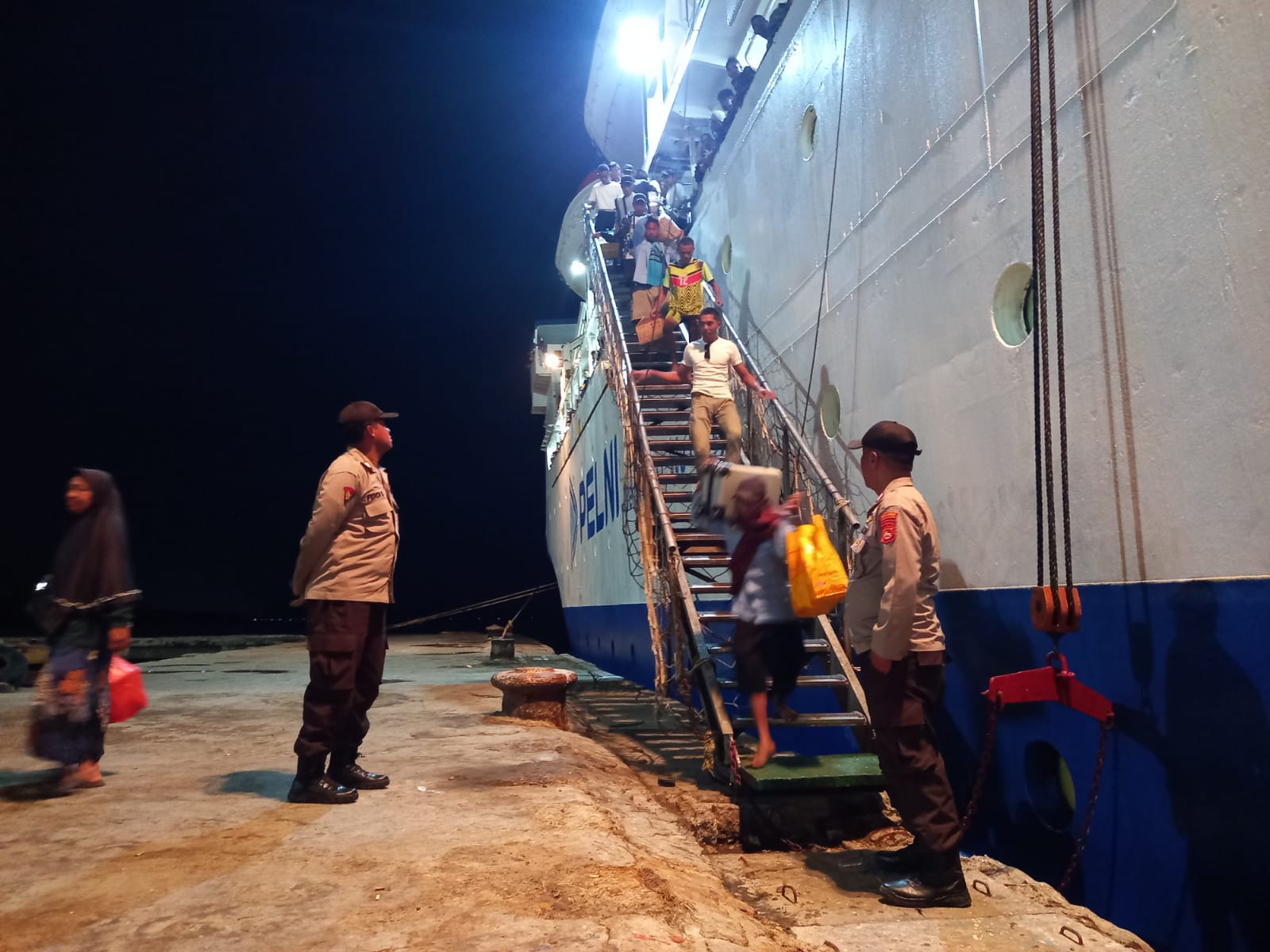 Kota Bima, NTB (13 Februari 2024) – Polsek Kawasan Pelabuhan Laut Bima melaksanakan pengamanan terhadap Kapal Motor (KM) BINAIYA yang melakukan embarkasi dan debarkasi di Pelabuhan Bima pada Kamis (13/2) pukul 01.59 WITA. Pengamanan berlangsung di areal Pelabuhan Bima, Jalan R.E. Marthadinata, Kelurahan Tanjung, Kecamatan Rasanae Barat, Kota Bima.