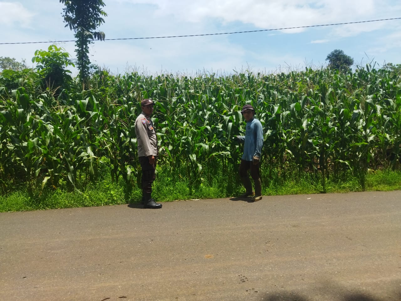 Dalam kegiatan tersebut, Bhabinkamtibmas menyambangi lahan pertanian milik warga bernama Amat, yang telah ditanami jagung. Ia memberikan edukasi dan motivasi kepada pemilik lahan serta warga sekitar agar terus memanfaatkan lahan pertanian dengan optimal.