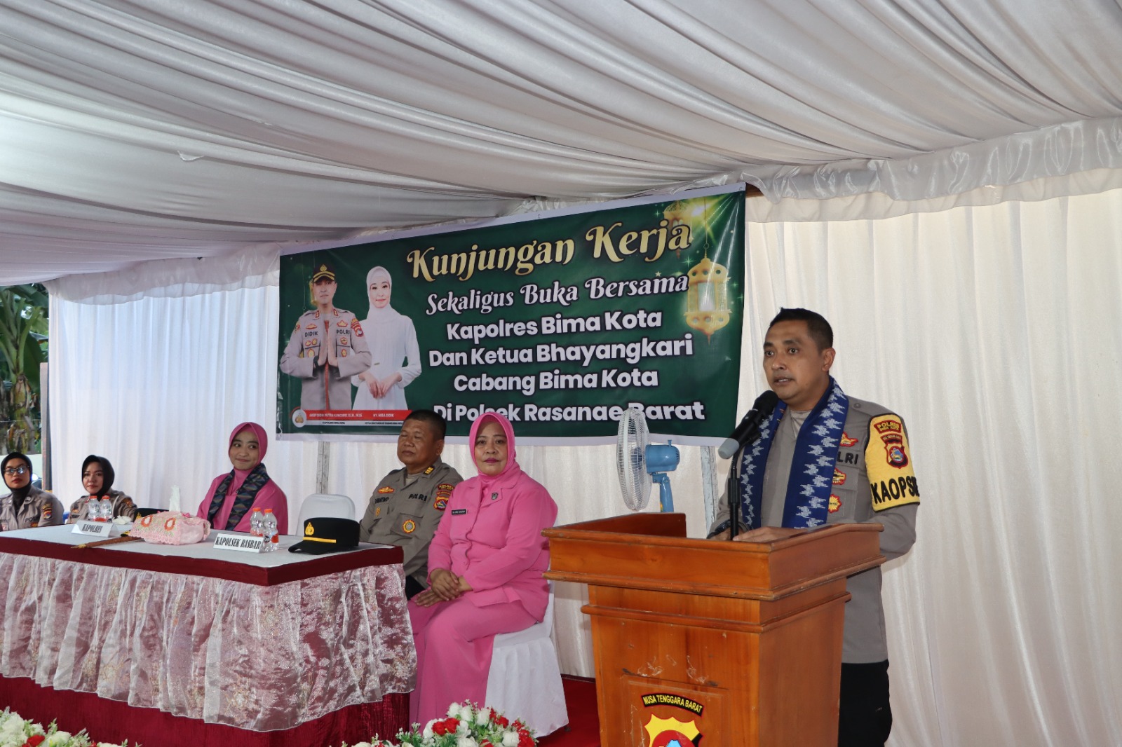 Kota Bima, NTB (04 Maret 2025) – Kapolres Bima Kota, AKBP Didik Putra Kuncoro, S.I.K., M.Si., bersama Ketua Bhayangkari Cabang Bima Kota, Ny. Mira Didik, didampingi oleh Wakapolres Kompol Herman, S.H., serta Pejabat Utama (PJU) Polres Bima Kota, melaksanakan kunjungan kerja ke Polsek Rasanae Barat, Senin (3/3/2025). Kegiatan ini sekaligus dirangkaikan dengan buka puasa bersama dalam momentum bulan suci Ramadhan 1446 Hijriah.