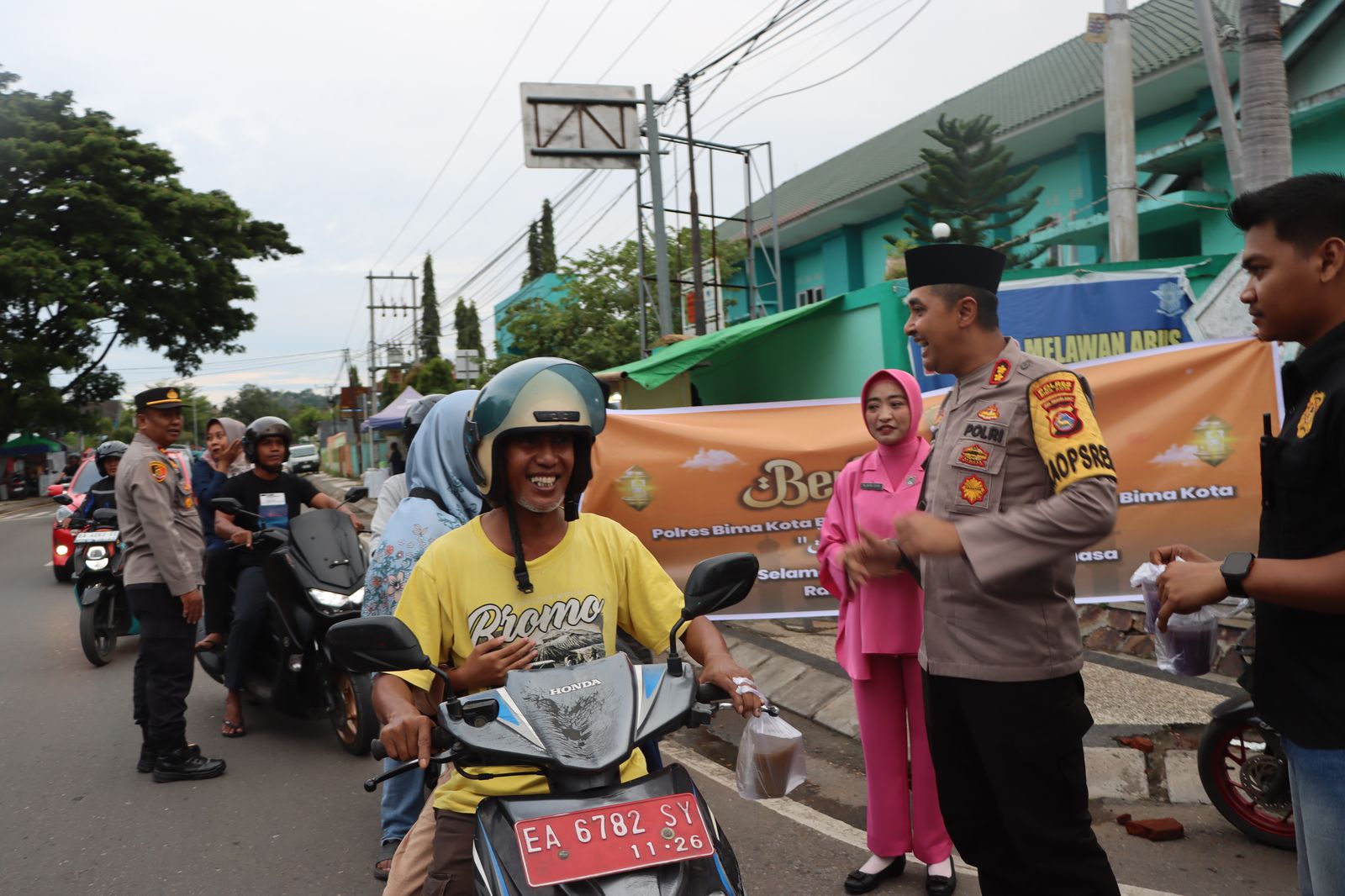 Dalam aksi sosial tersebut, Kapolres Bima Kota bersama jajaran membagikan sekitar 250 paket takjil kepada masyarakat dan pengendara yang melintas di kawasan tersebut. Kegiatan ini mendapat sambutan hangat dari warga yang antusias menerima bingkisan takjil sebagai bentuk kepedulian Polres Bima Kota terhadap masyarakat yang sedang menjalankan ibadah puasa.