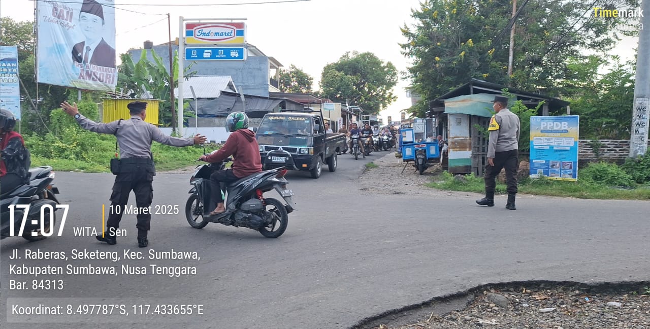 Sumbawa Besar –NTB, Polsek Sumbawa, jajaran Polres Sumbawa, Polda NTB, melaksanakan pengamanan terhadap kegiatan ngabuburit masyarakat yang tengah menunggu waktu berbuka puasa pada Senin (10/03/25).