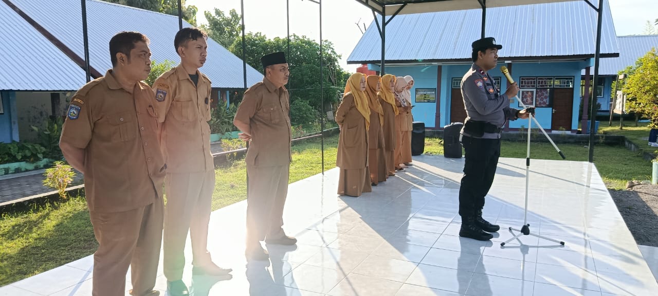 Kali ini, AIPDA Gede Windu Prayoga, S.H., berkesempatan memimpin jalannya upacara dan menyampaikan sejumlah himbauan penting terkait kamtibmas kepada seluruh siswa dan guru.
