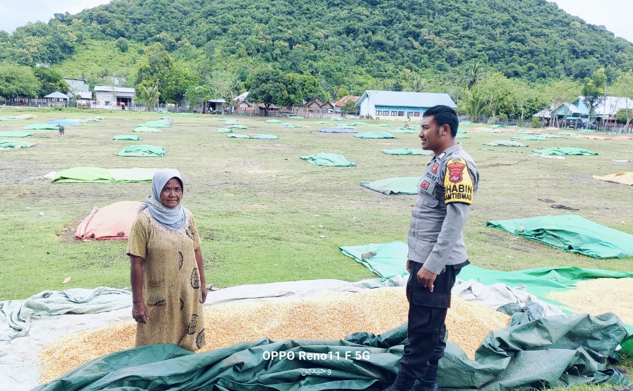 Dalam rangka mendukung Program Ketahanan Pangan Nasional Menuju Indonesia Emas, Polsek Hu’u melalui Bhabinkamtibmas Desa Adu, BRIGADIR Wahyudin, kembali menunjukkan komitmennya dalam mendampingi kegiatan pertanian warga binaannya. Pada Minggu, 13 April 2025, pukul 08.00 Wita, Brigadir Wahyudin melaksanakan giat pemantauan terhadap proses penjemuran jagung milik warga atas nama Ibu Suriani, yang berlangsung di Lapangan Bola, Desa Adu, Kecamatan Hu’u, Kabupaten Dompu.